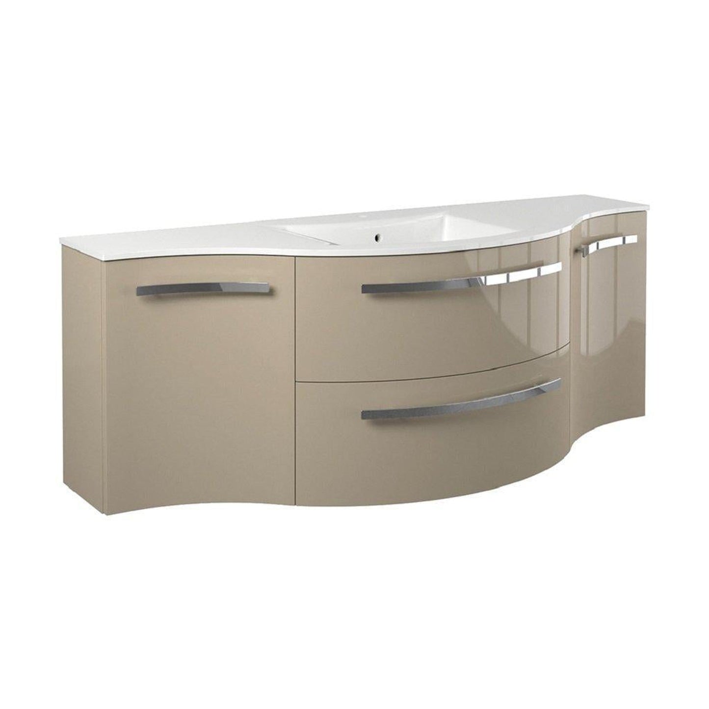 Add style to your bathroom with LaToscana's Ameno 57" Sand Wall-Mounted Vanity Set With Left & Right Concave Cabinets. With all components exquisitely made in Italy, the exceptional look of this vanity set is sure to be the focal point of any bathroom.