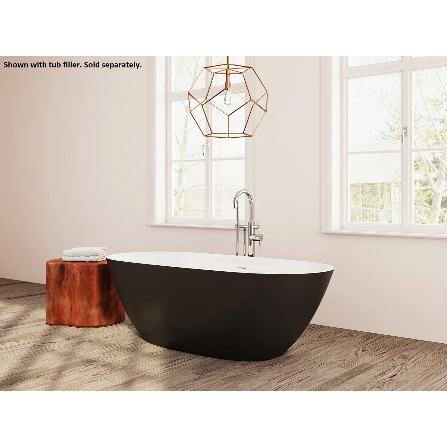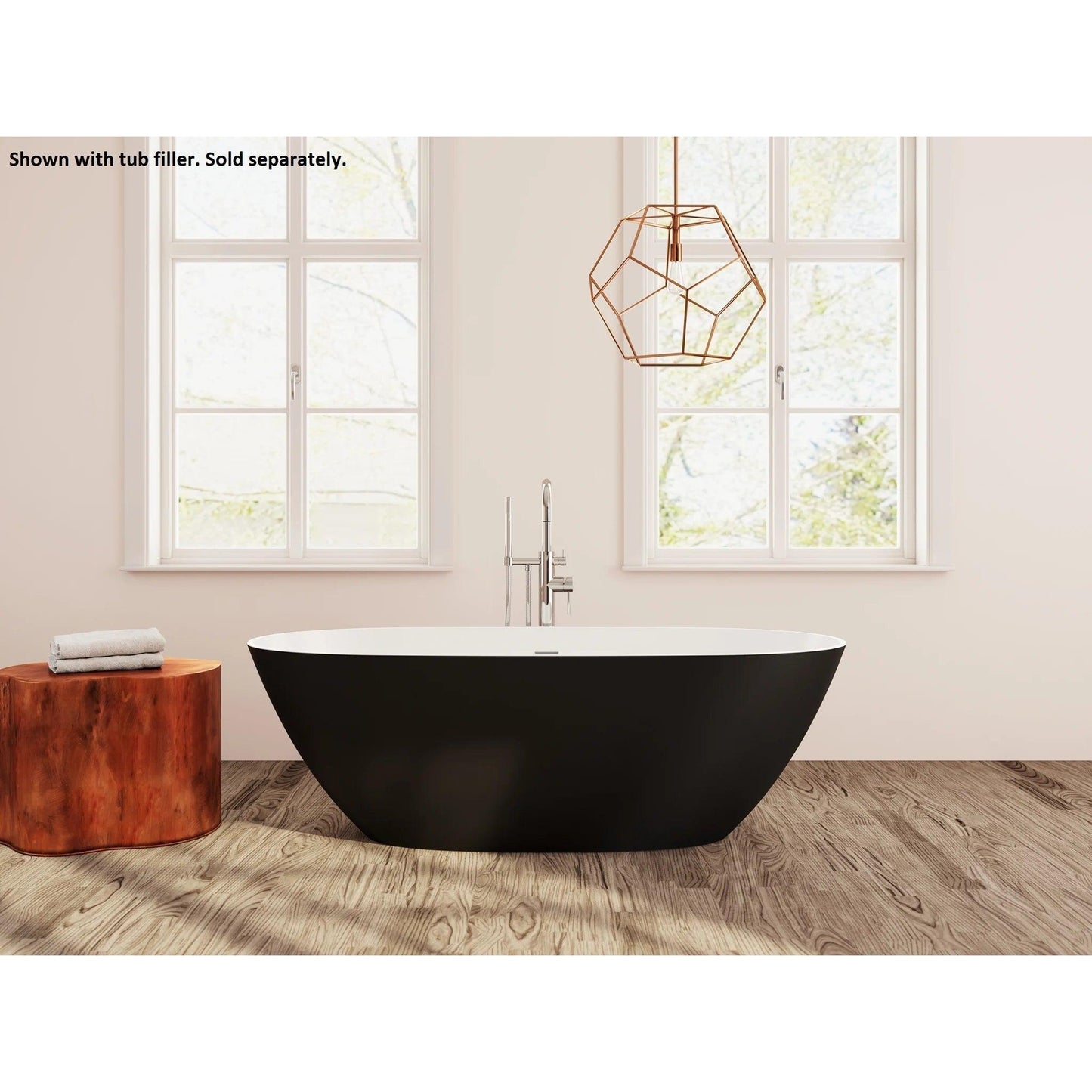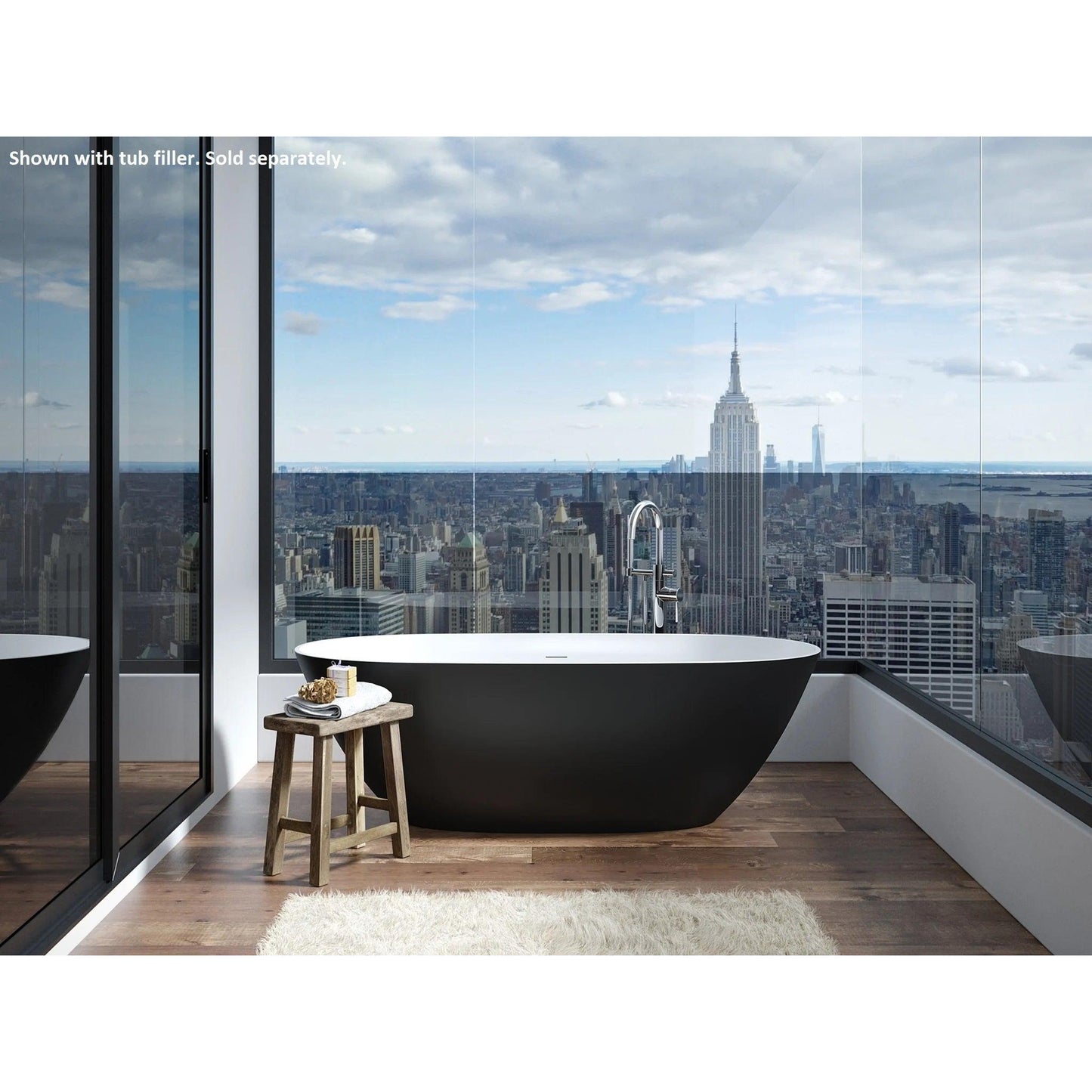 LaToscana Eco-Lapistone Genova 70" Matte Black Freestanding Solid Surface Soaking Bathtub
