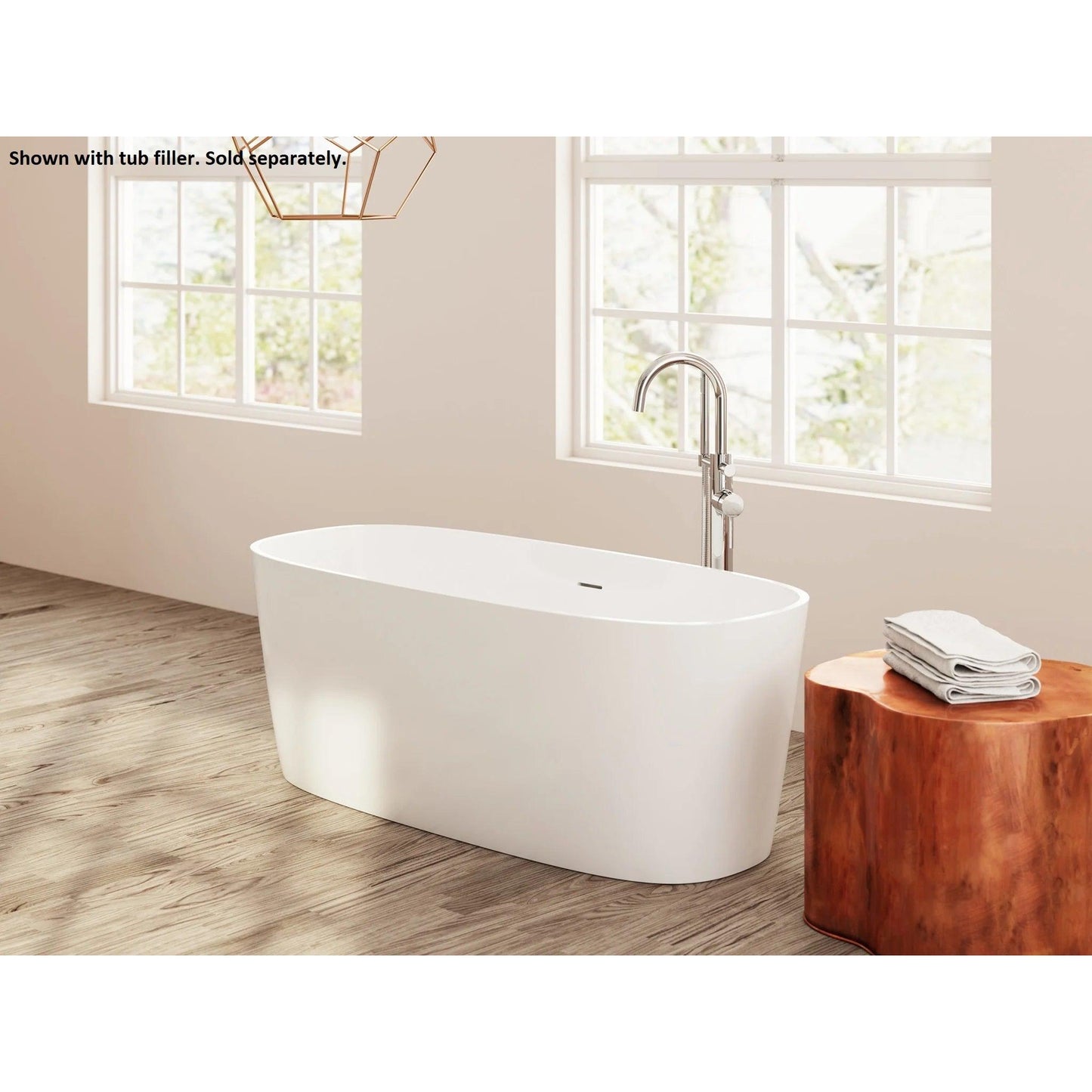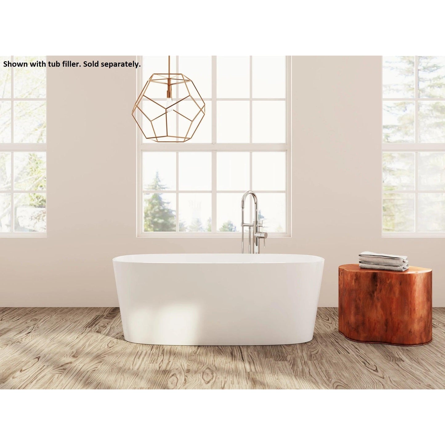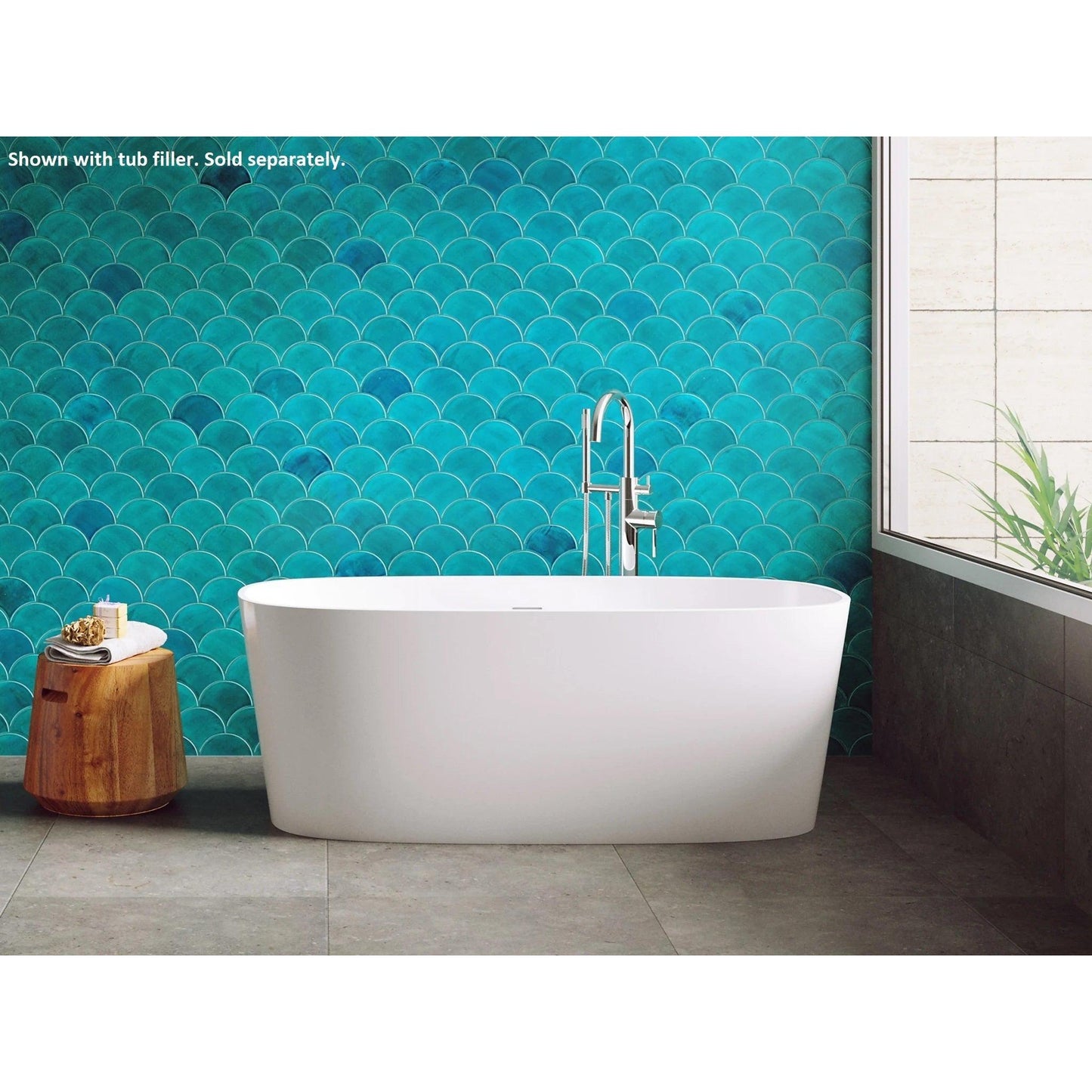 LaToscana Eco-Lapistone Padova 59" White Satin Freestanding Solid Surface Soaking Bathtub