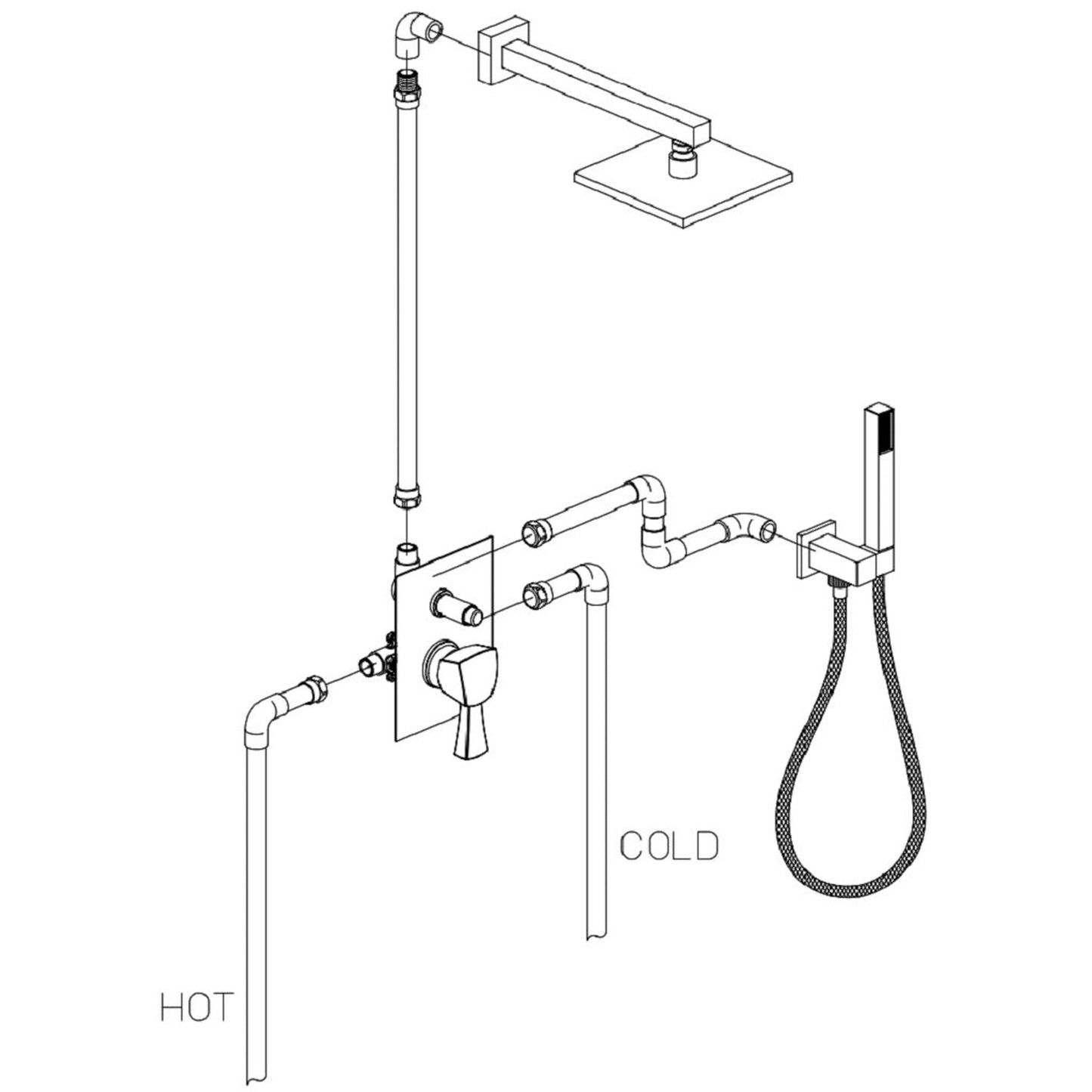 - Square 1-jet wall-mounted brass hand shower