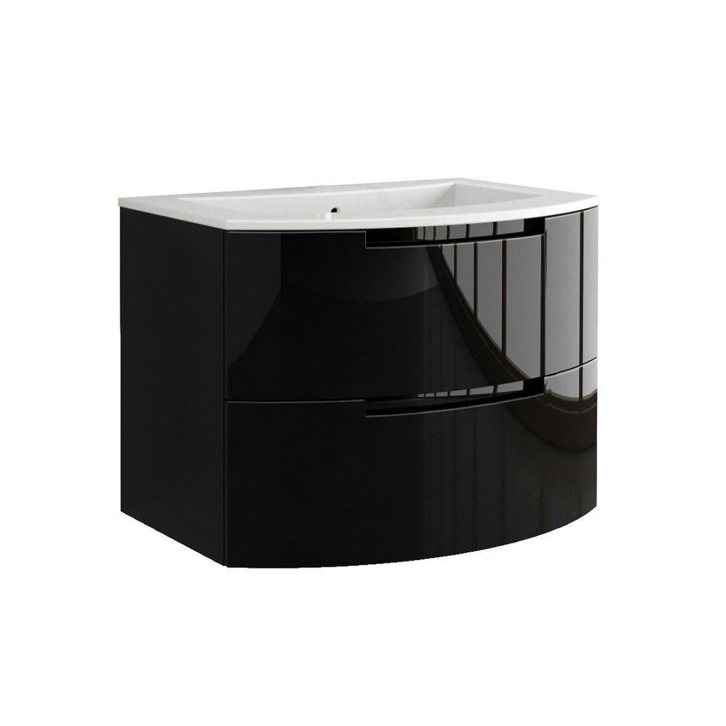 LaToscana Oasi 39" wall-mounted vanity includes L036 vanity unit which has two curved drawers with soft-closing system, along with LV048 integrated washbasin in white Tekorlux with overflow.