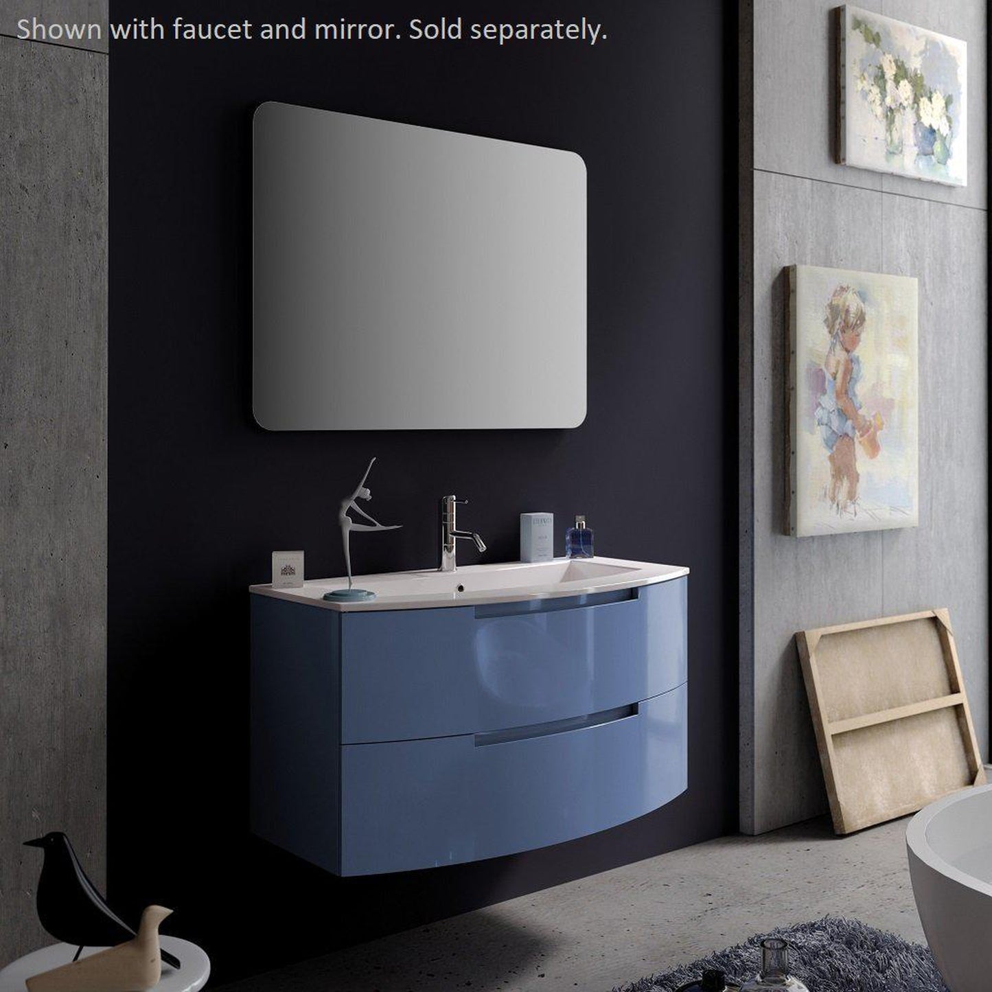 LaToscana Oasi 39" wall-mounted vanity includes L036 vanity unit which has two curved drawers with soft-closing system, along with LV048 integrated washbasin in white Tekorlux with overflow.