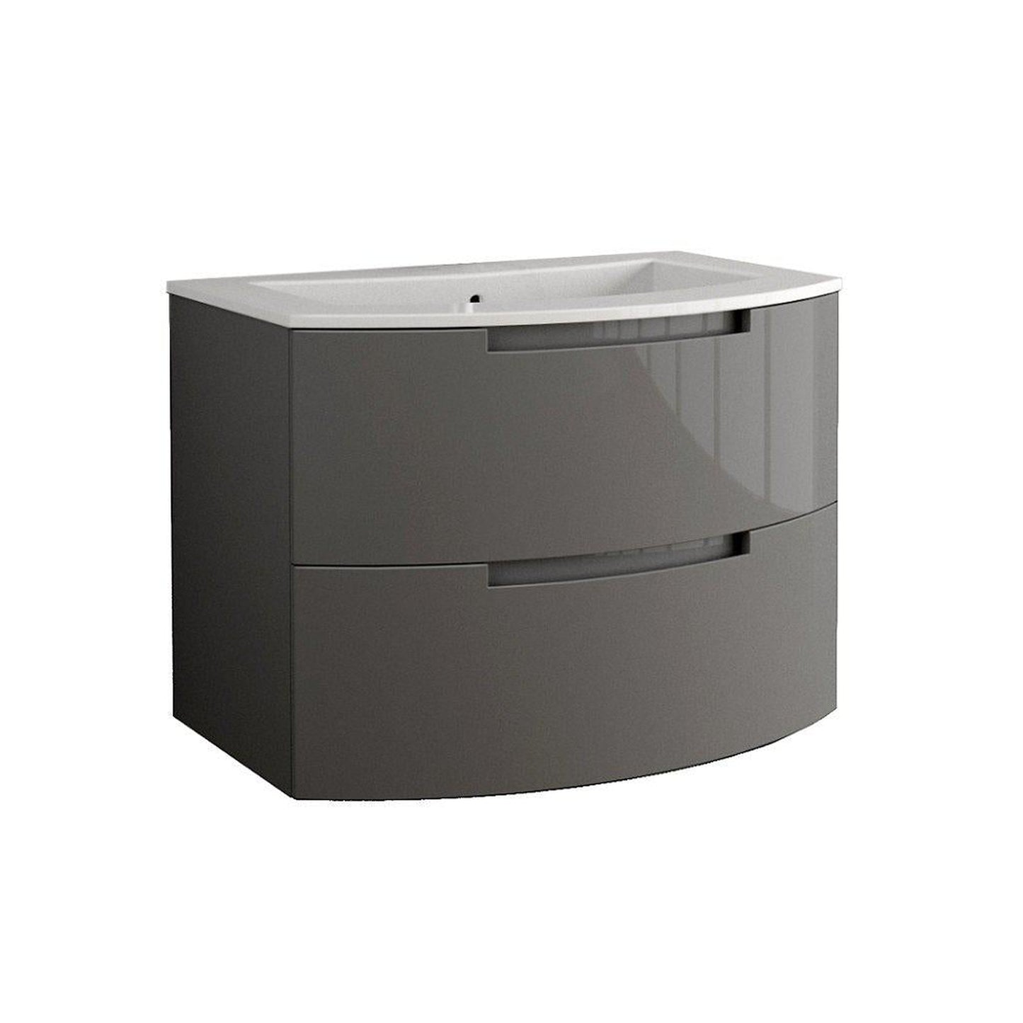LaToscana Oasi 39" wall-mounted vanity includes L036 vanity unit which has two curved drawers with soft-closing system, along with LV048 integrated washbasin in white Tekorlux with overflow.