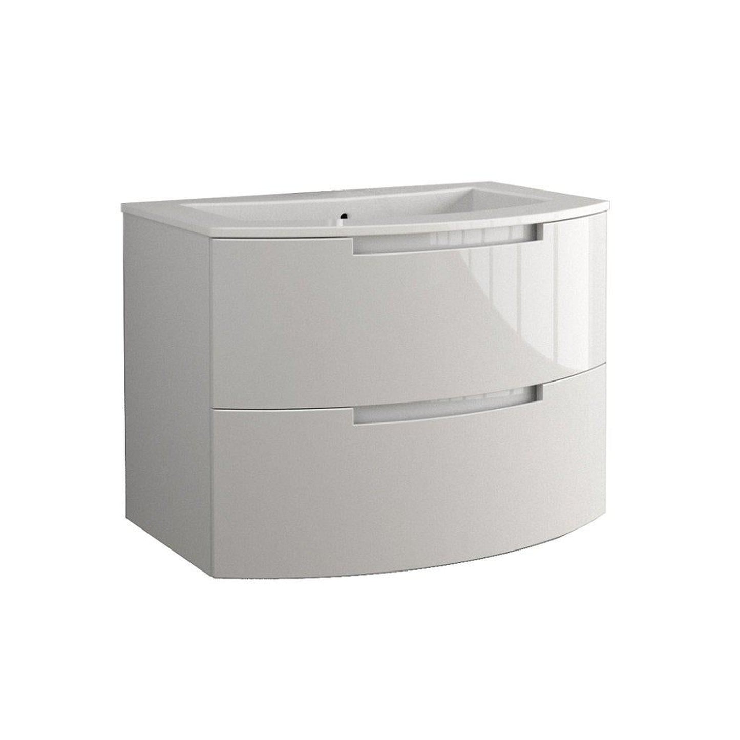LaToscana Oasi 39" wall-mounted vanity includes L036 vanity unit which has two curved drawers with soft-closing system, along with LV048 integrated washbasin in white Tekorlux with overflow.