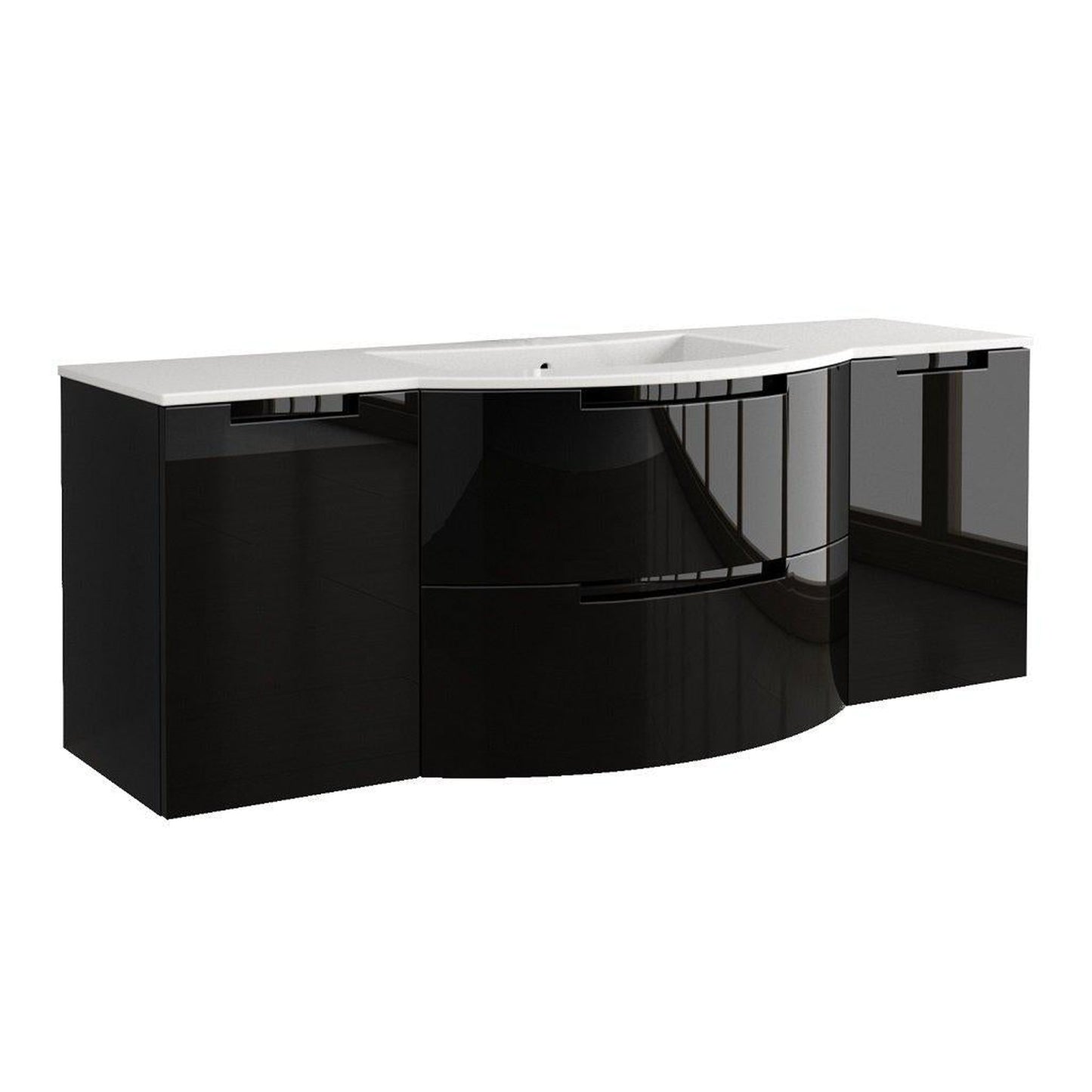 LaToscana Oasi 67" Black Wall-Mounted Vanity Set With Left & Right Side Cabinets