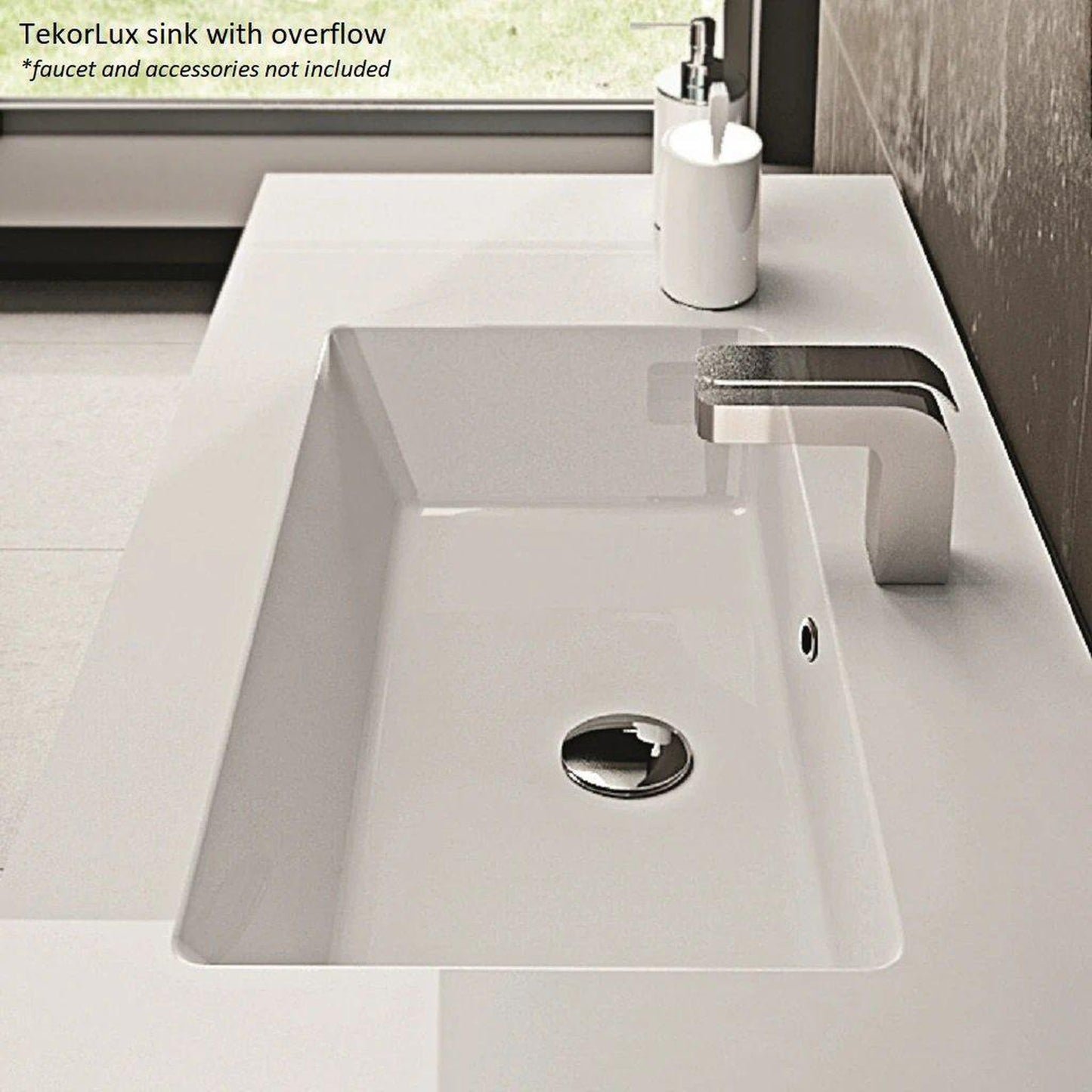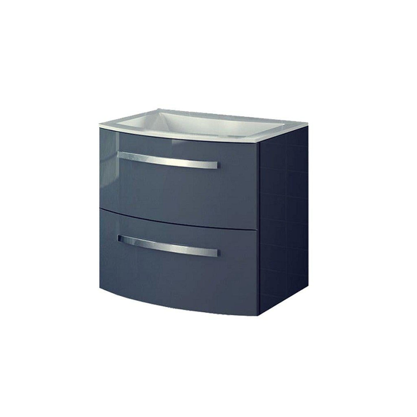 LaToscana Palio 22" wall-mounted vanity includes L454 vanity piece which has two curved drawers with soft-closing system, along with LV108 integrated washbasin in white Tekorlux with overflow.