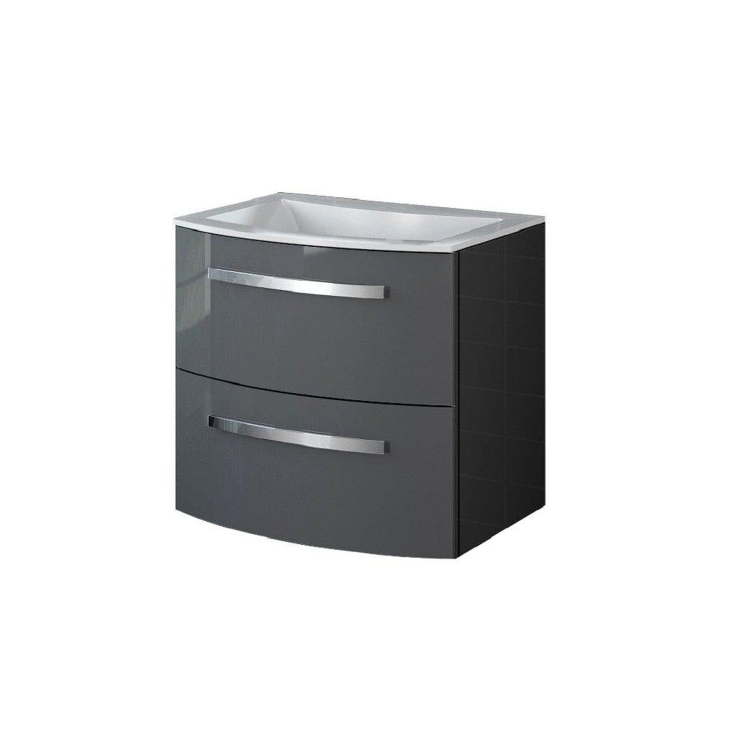 LaToscana Palio 22" wall-mounted vanity includes L454 vanity piece which has two curved drawers with soft-closing system, along with LV108 integrated washbasin in white Tekorlux with overflow.