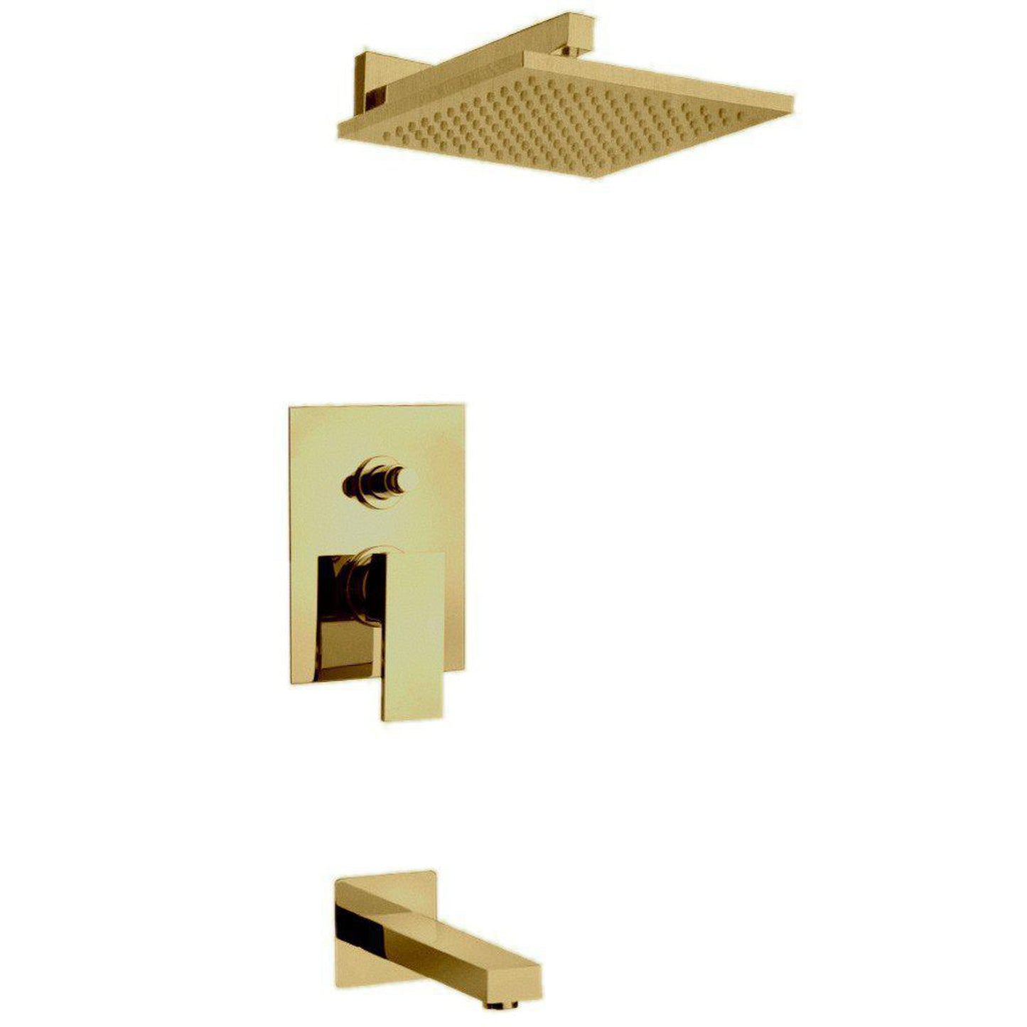 LaToscana Quadro Matt Gold Pressure Balance Tub & Shower Kit