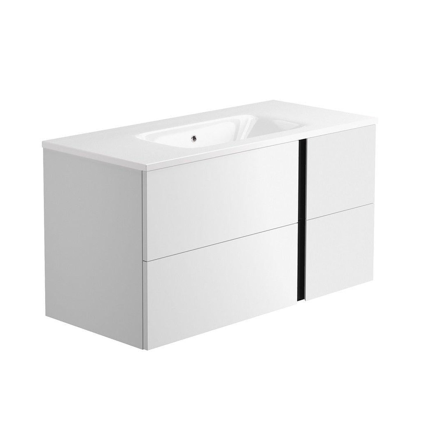LaToscana Vertical 39" wall-mounted vanity includes L763W vanity unit which has two drawers with soft-closing system and vertical black grip, along with LV137 integrated washbasin in white mineral marble with overflow.