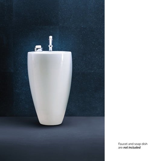 Laufen IlBagnoAlessi 21" x 33" Round White Floor-Mounted Bathroom Sink With Faucet Hole