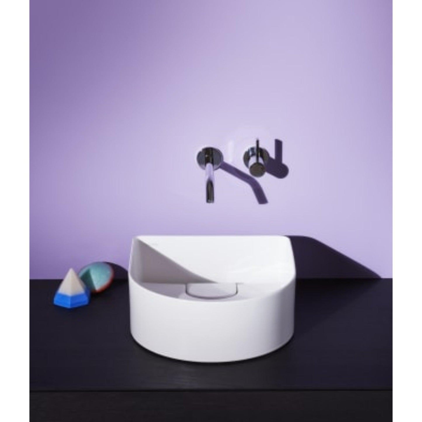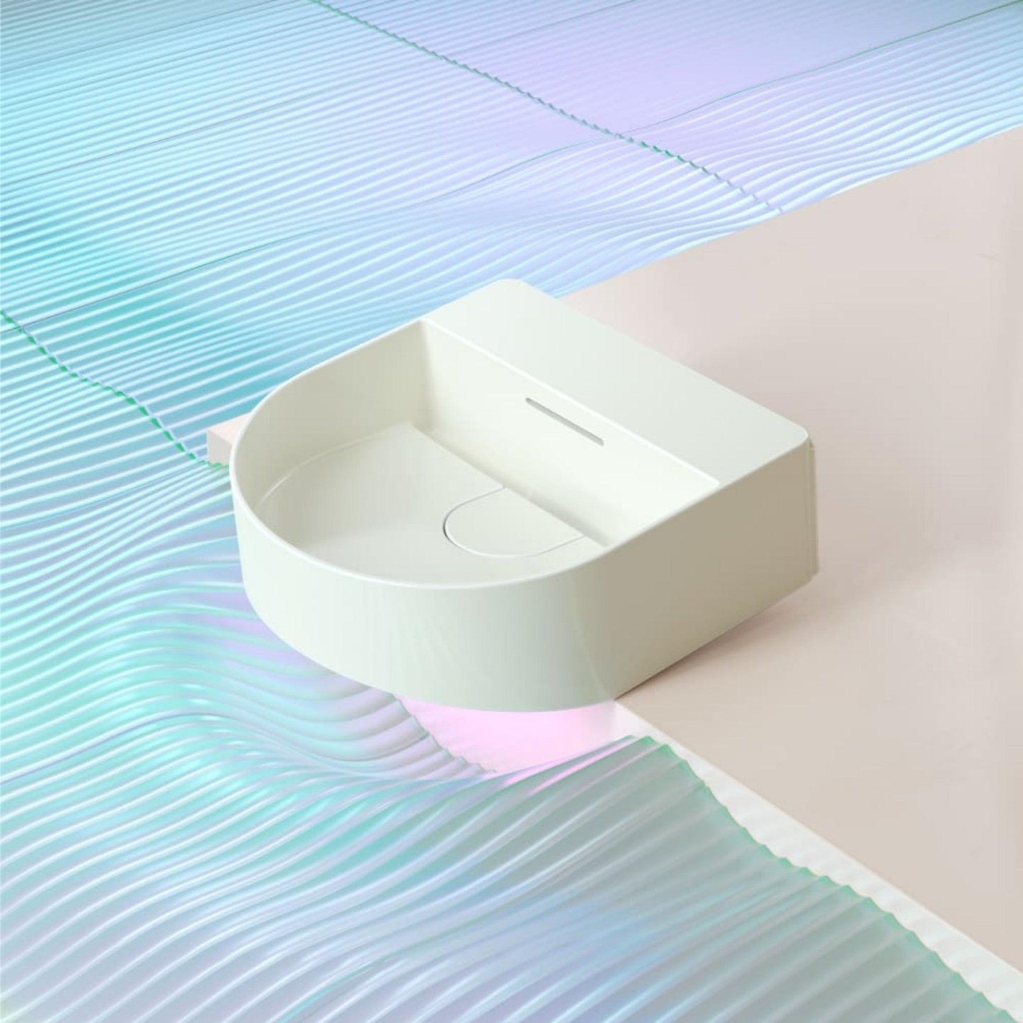 Expressive and yet minimalist, Sonar’s formal language plays with arcs and angles, emphasizing the slender lines of SaphirKeramik. To further enhance the lightness of the objects, Urquiola and Laufen developed a fine, three-dimensional texture for the external surfaces of the washbasin bowls.