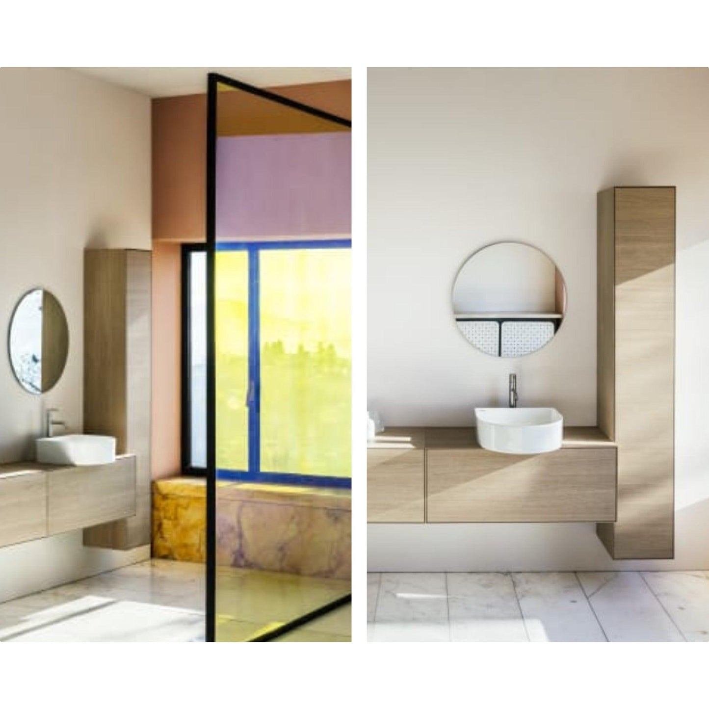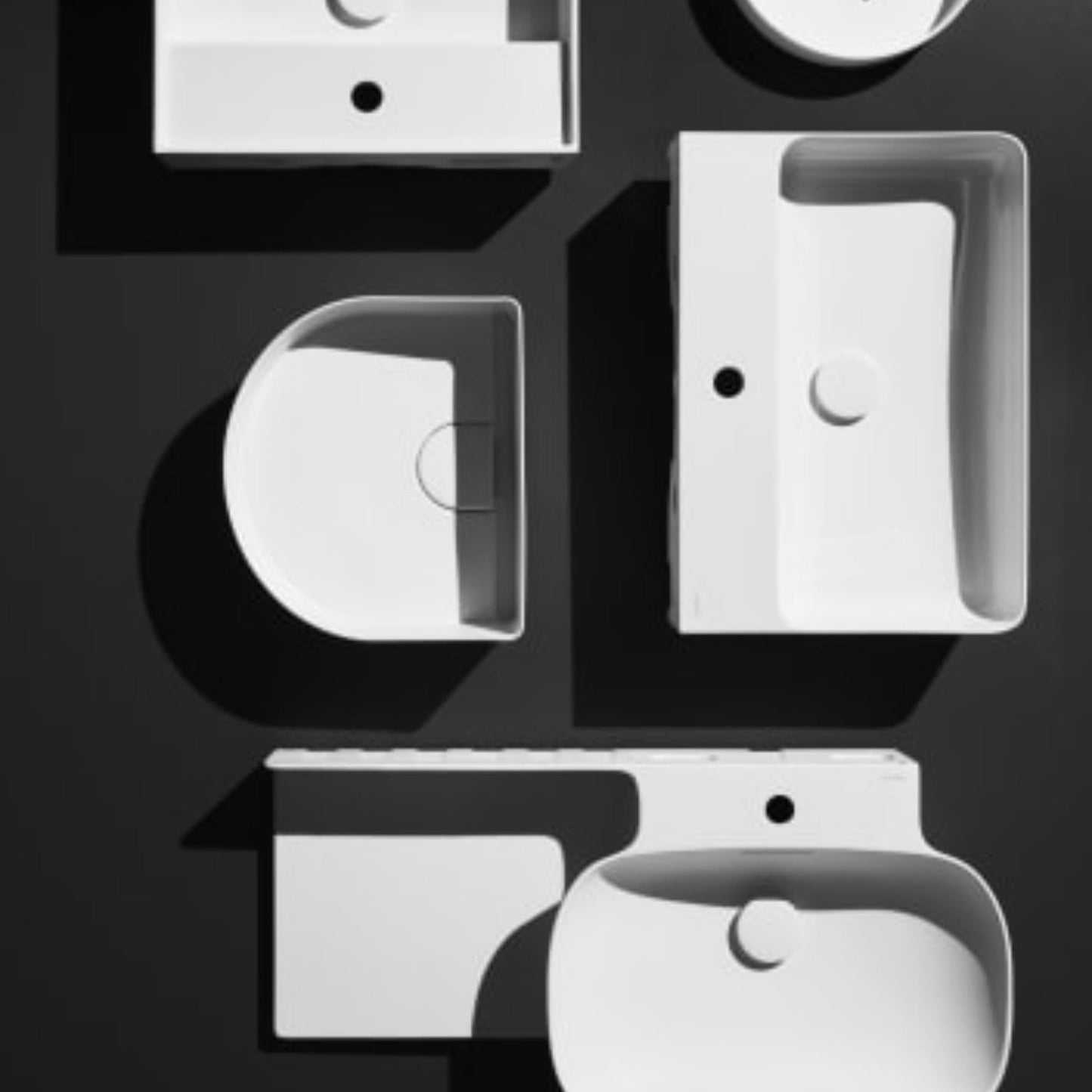 The Sonar collection includes floor-standing and wall-mounted washbasins, two washbasin bowls, and a double washbasin bowl, also available in matte white and all made of SaphirKeramik together with a new furniture collection.