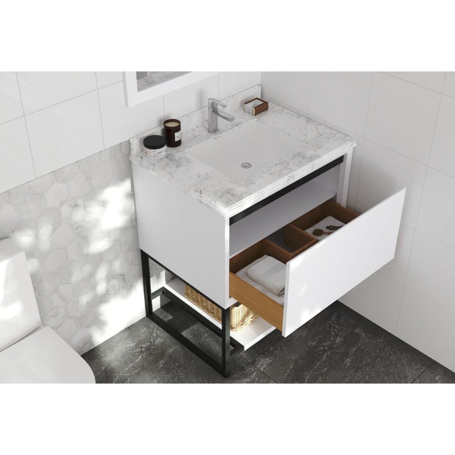 Laviva Alto 30" White Vanity Base and White Carrara Marble Countertop With Rectangular Ceramic Sink