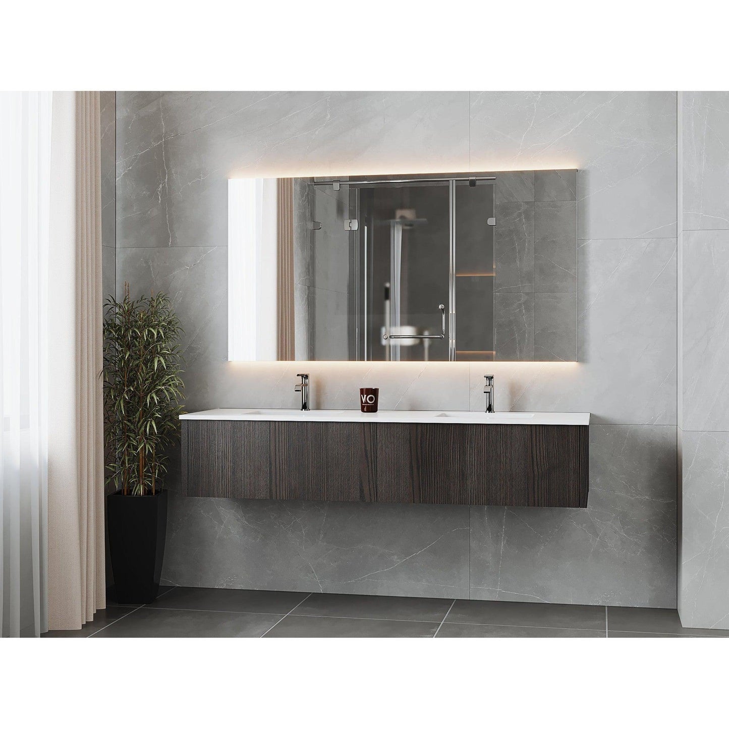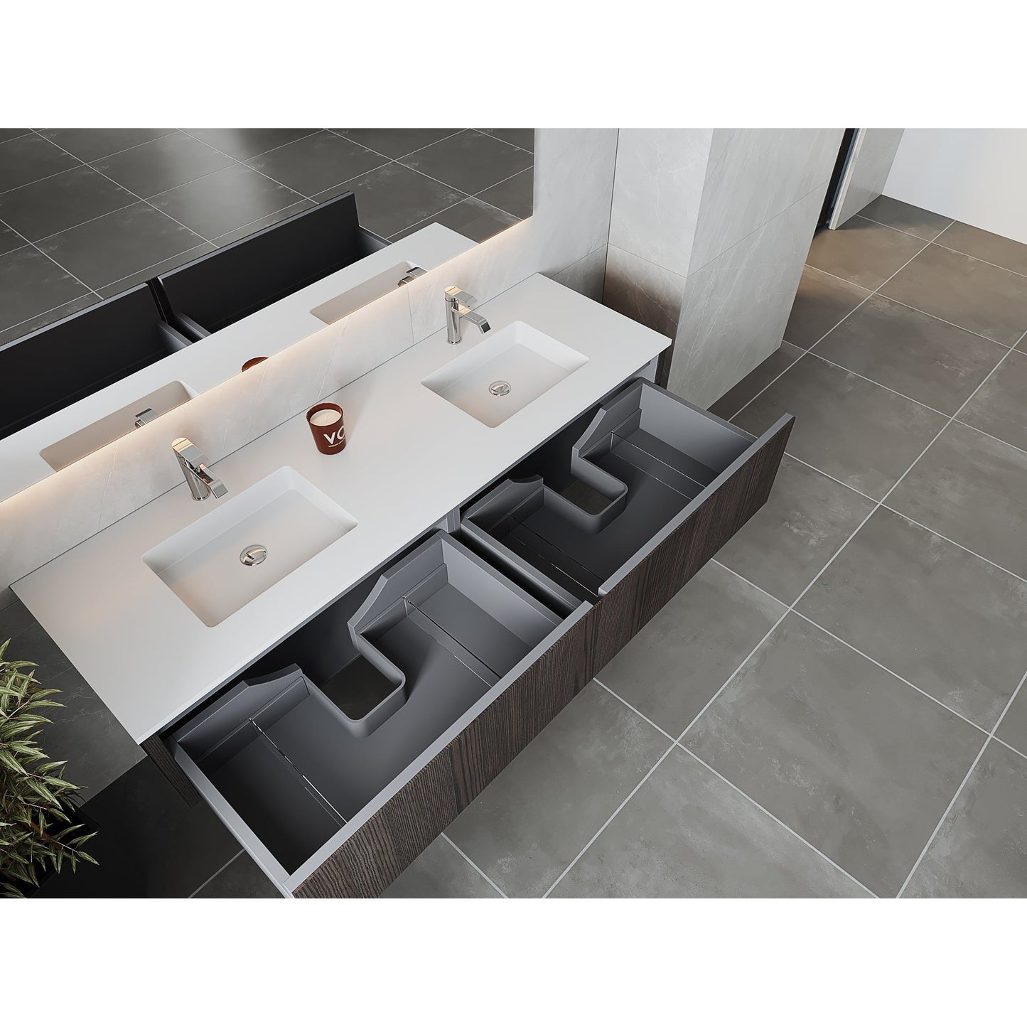 Laviva Legno 72" Carbon Oak Vanity Base and Matte White Solid Surface Countertop With Integrated Double Sink