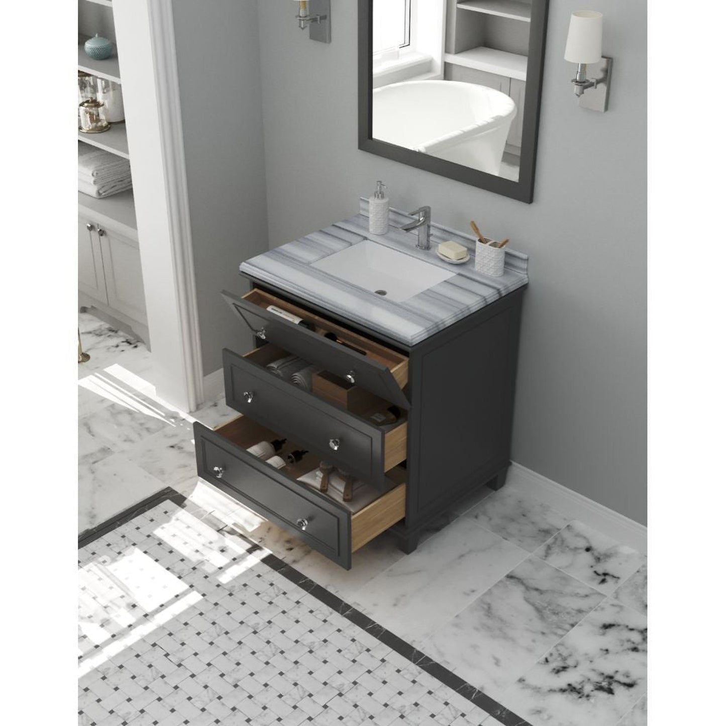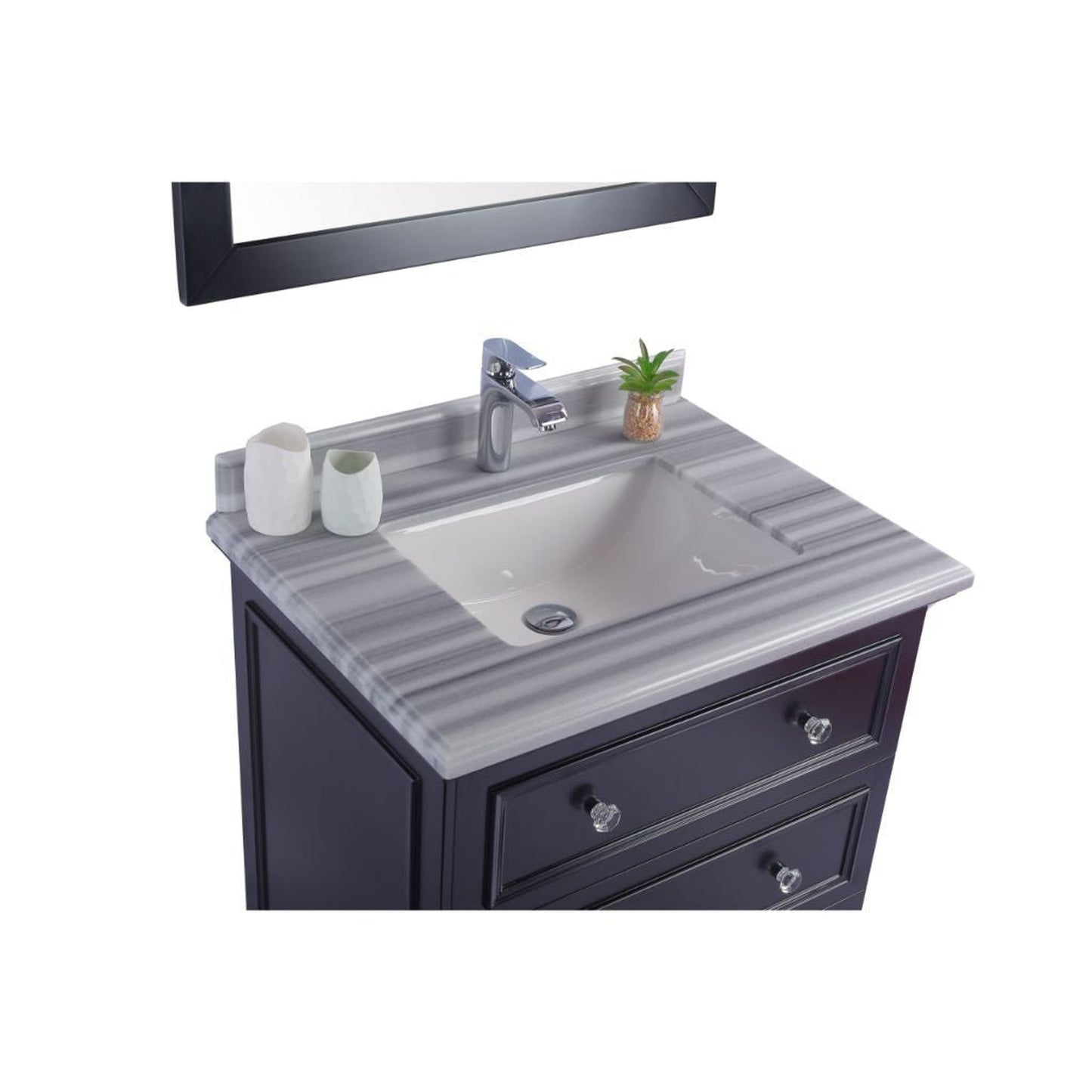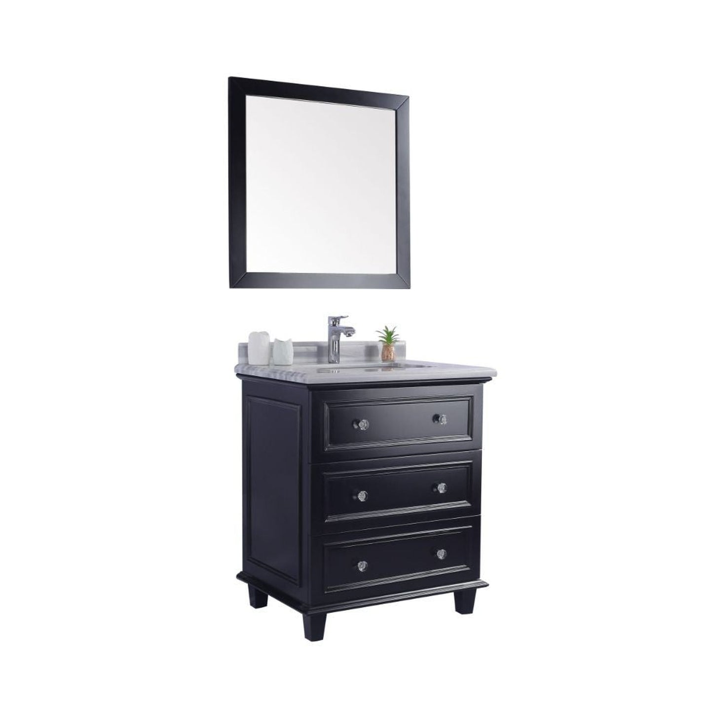 Laviva Luna 30" Espresso Vanity Base and White Stripes Marble Countertop with Rectangular Ceramic Sink