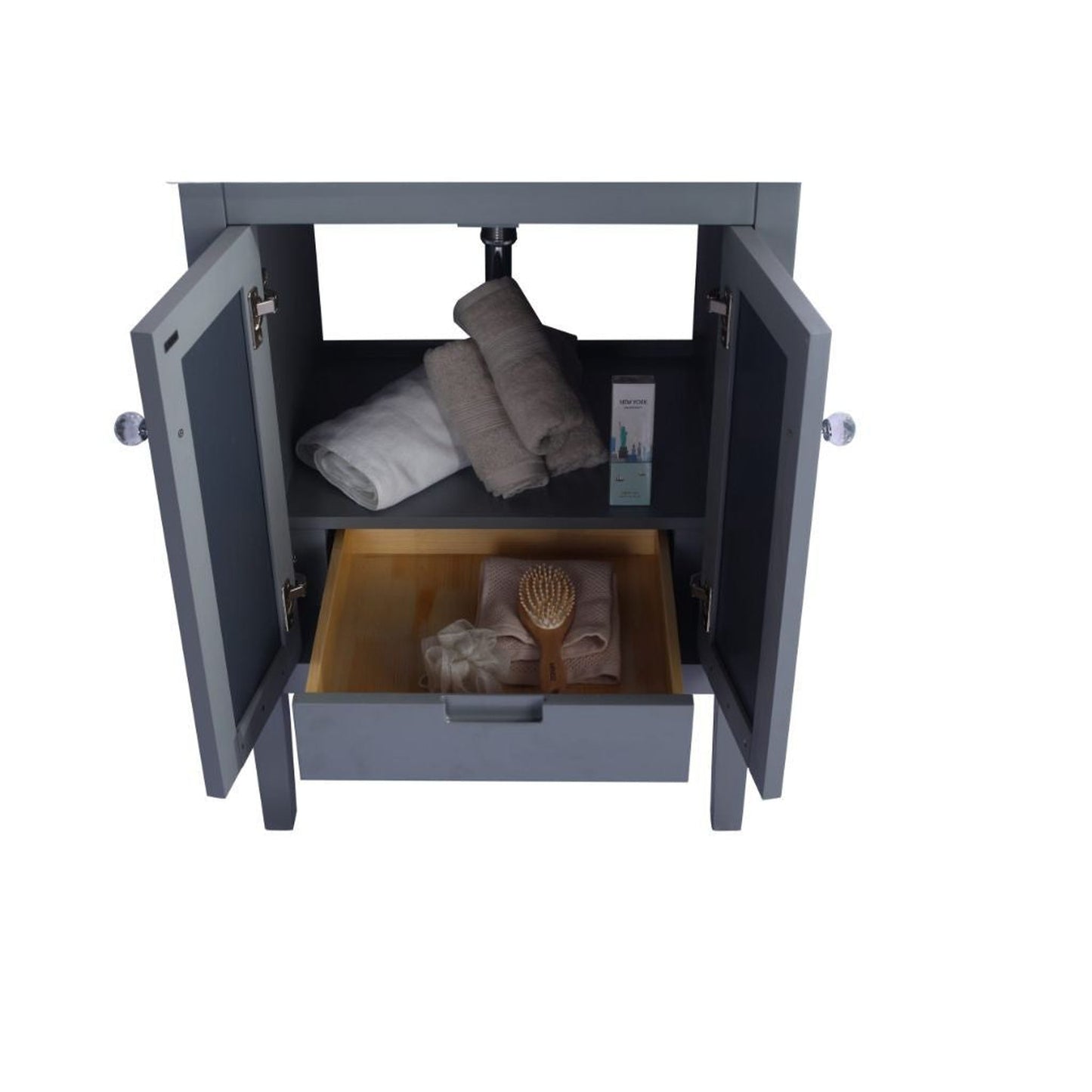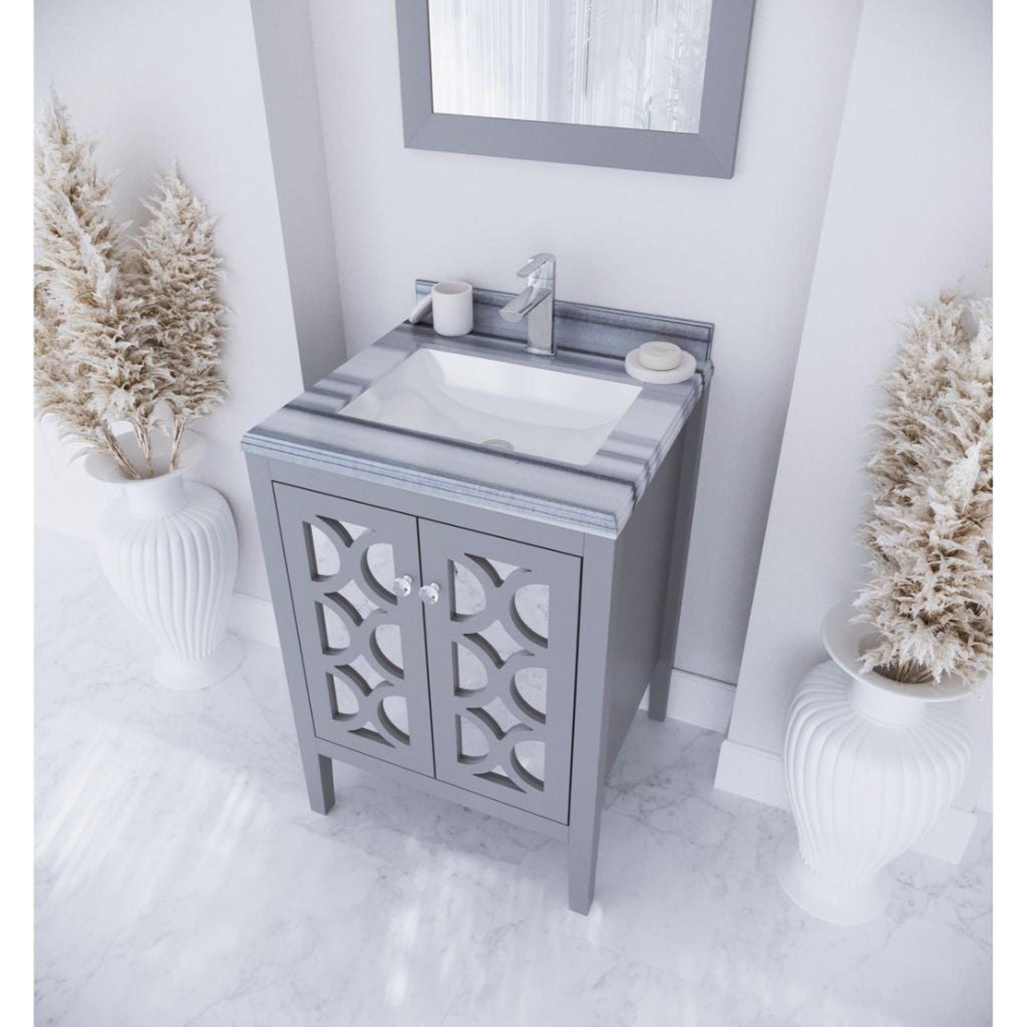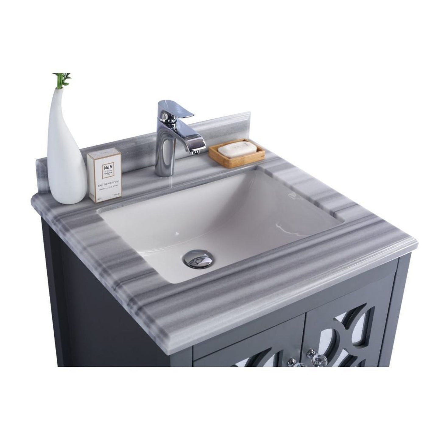 Laviva Mediterraneo 24" Gray Vanity Base and White Stripes Marble Countertop With Rectangular Ceramic Sink