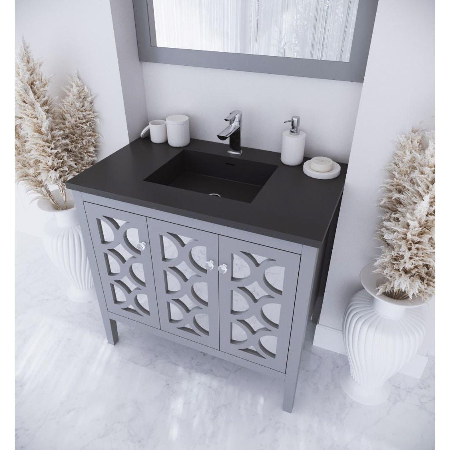 Laviva Mediterraneo 36" Gray Vanity Base and Matte Black Viva Stone Solid Surface Countertop With Integrated Sink