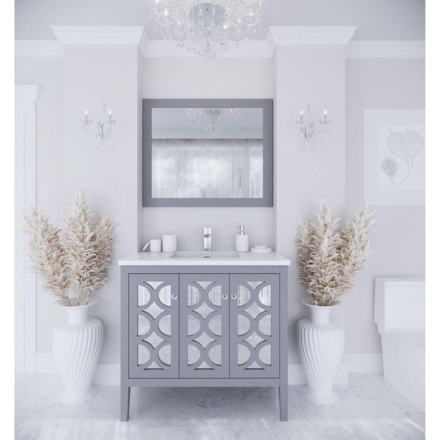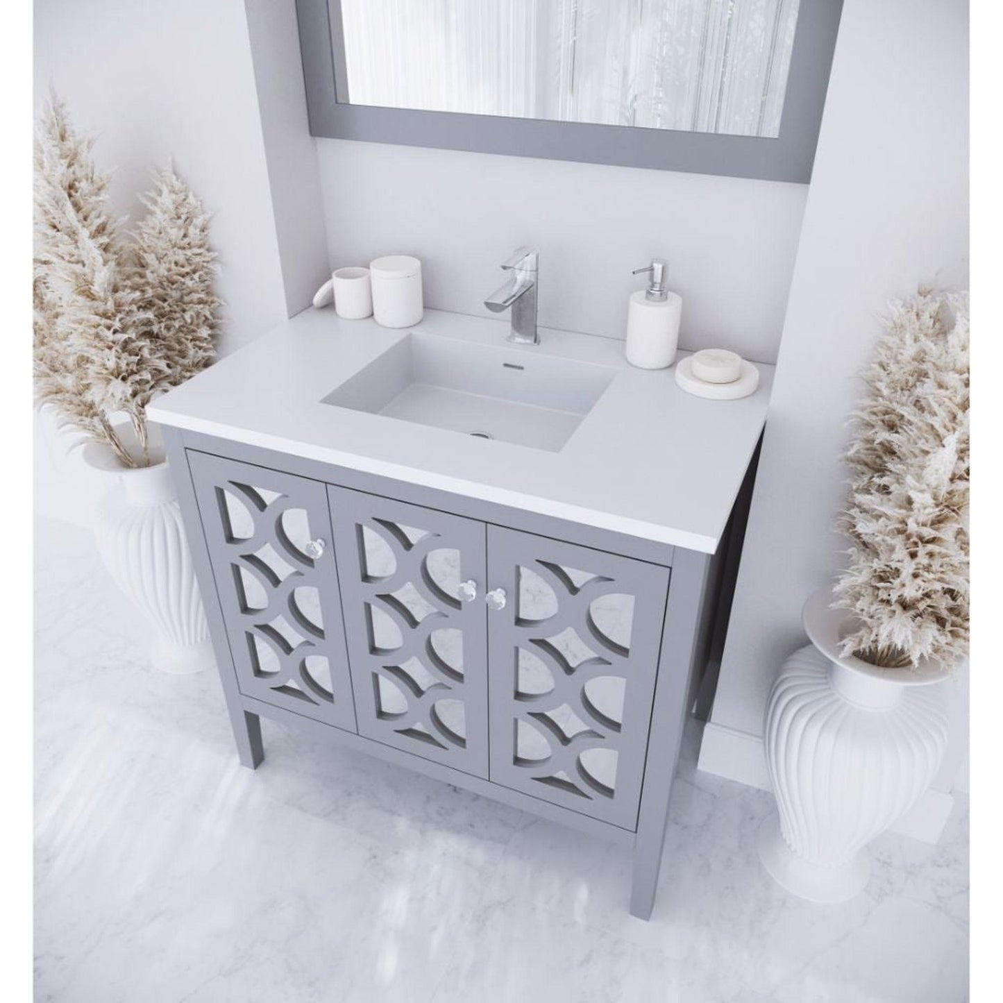 Laviva Mediterraneo 36" Gray Vanity Base and Matte White Viva Stone Solid Surface Countertop With Integrated Sink