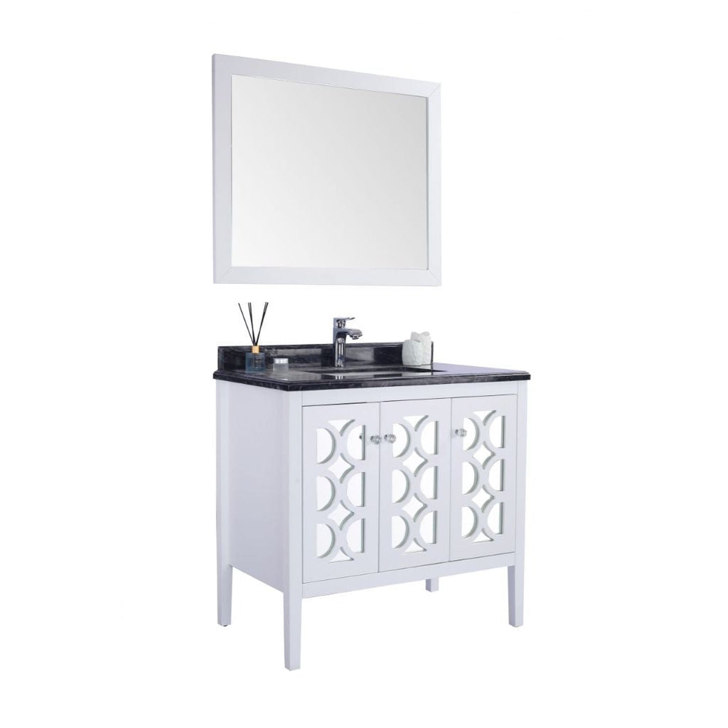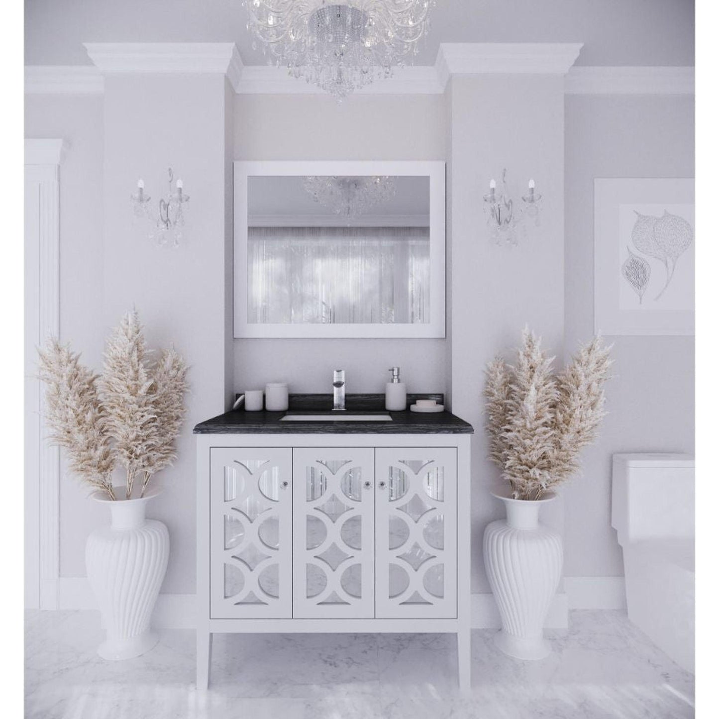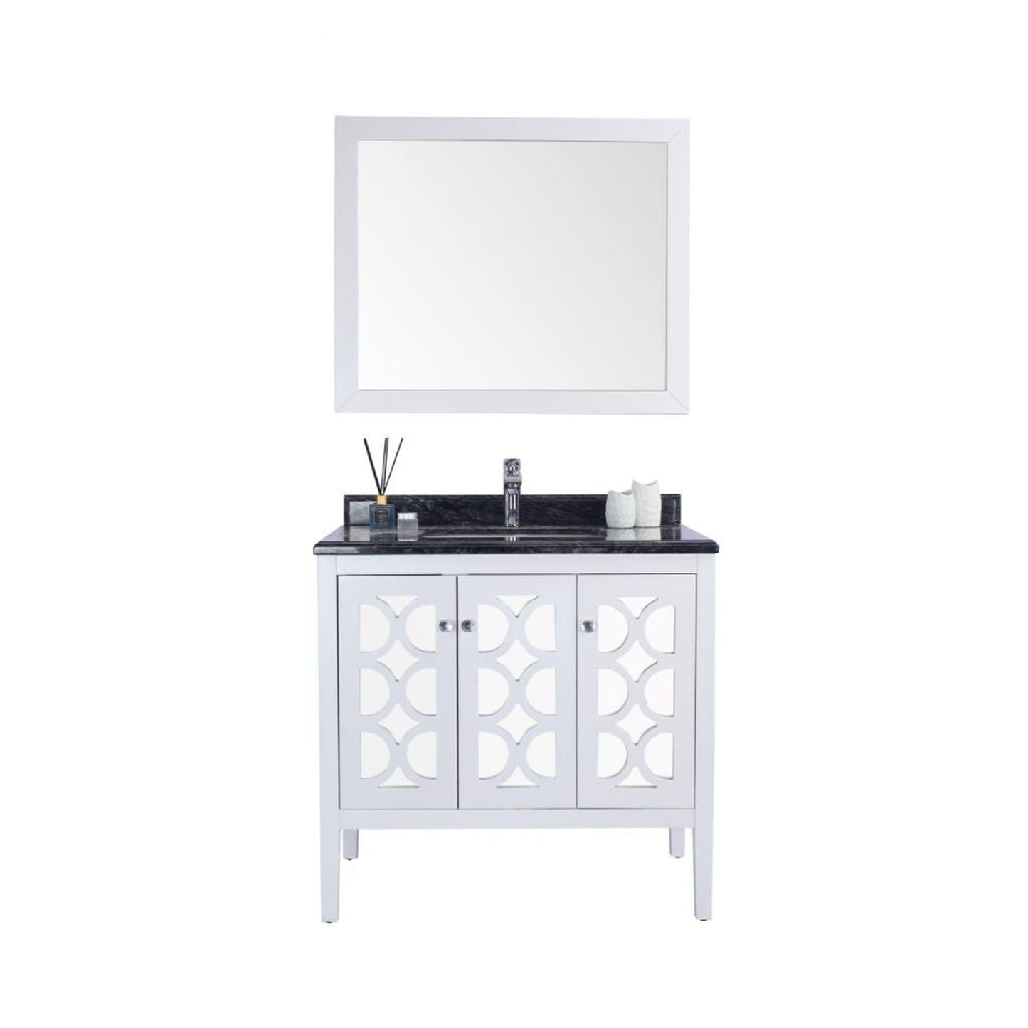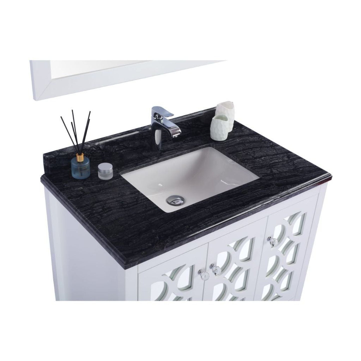 Laviva Mediterraneo 36" White Vanity Base and Black Wood Marble Countertop With Rectangular Ceramic Sink