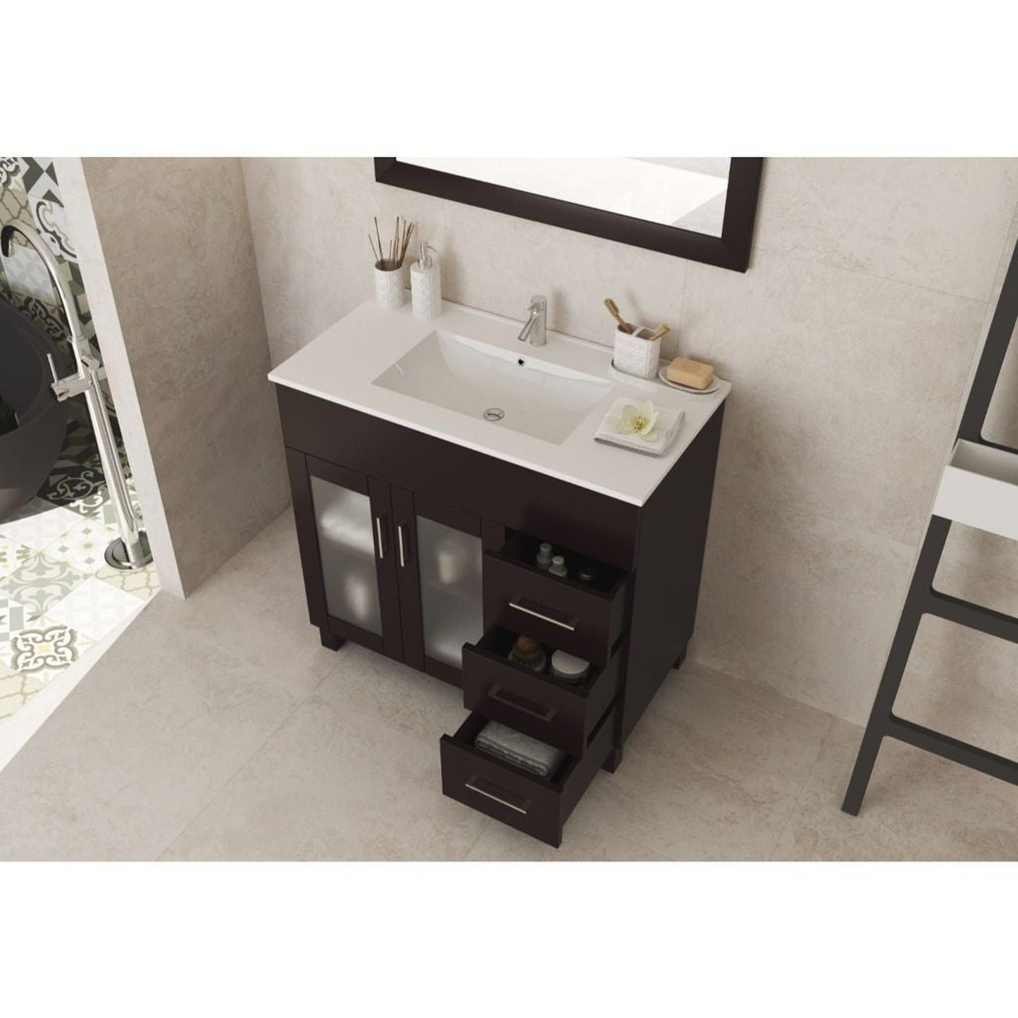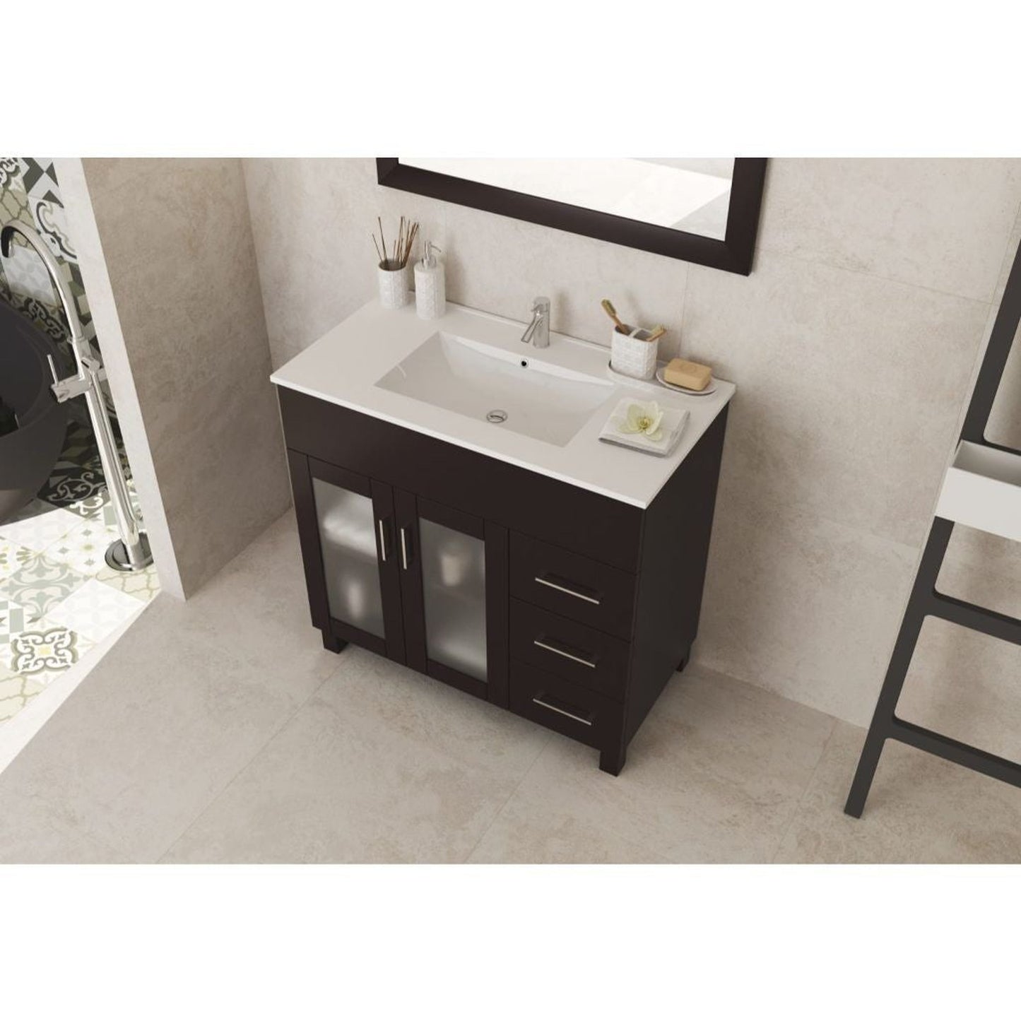 Laviva Nova 36" Brown Vanity Base and White Countertop With Ceramic Sink