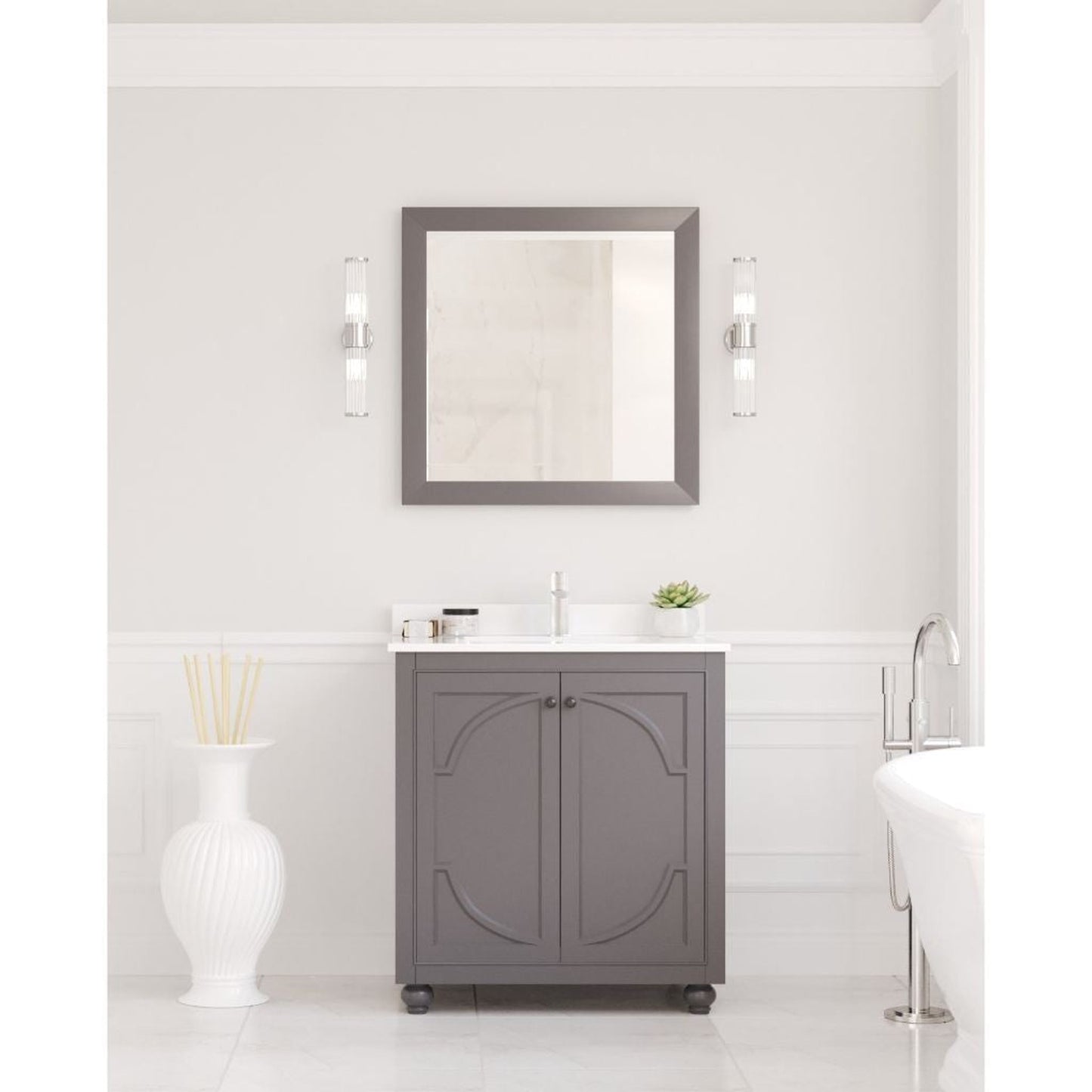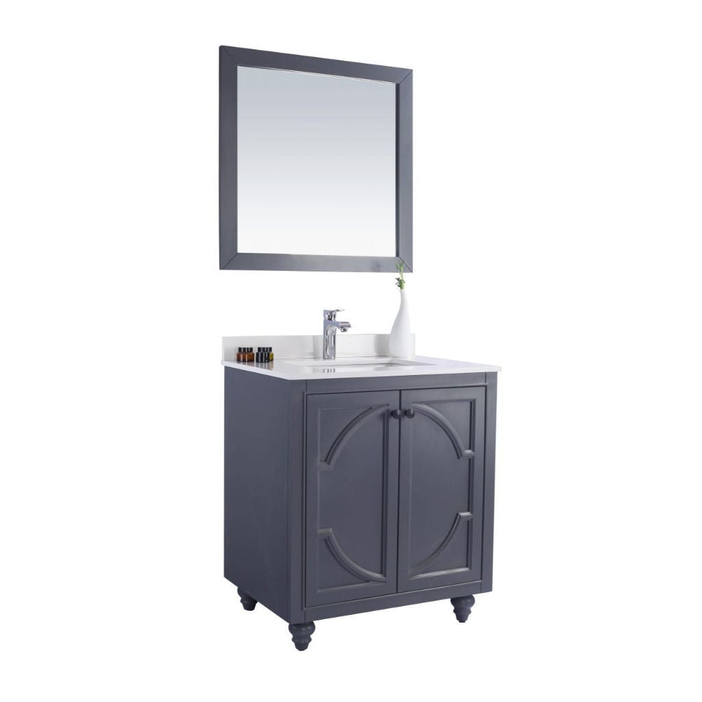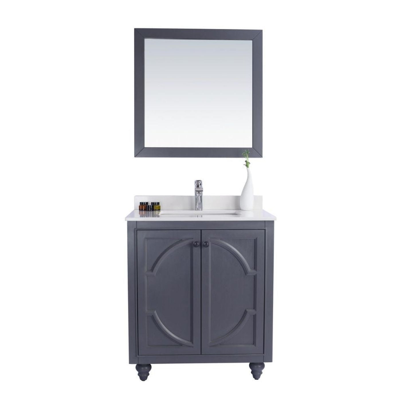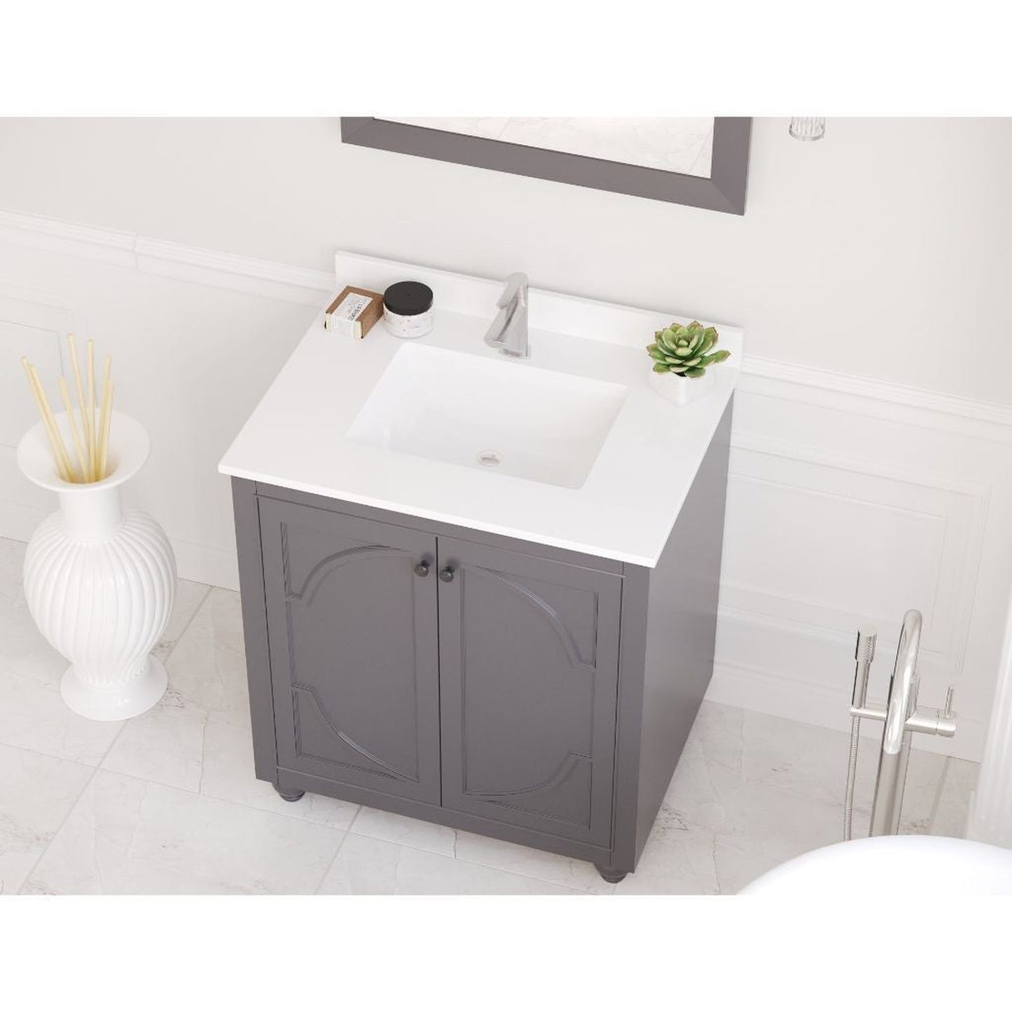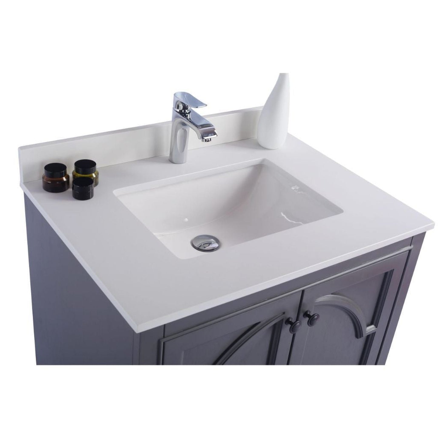 Laviva Odyssey 30" Maple Gray Vanity Base and White Quartz Countertop With Rectangular Ceramic Sink
