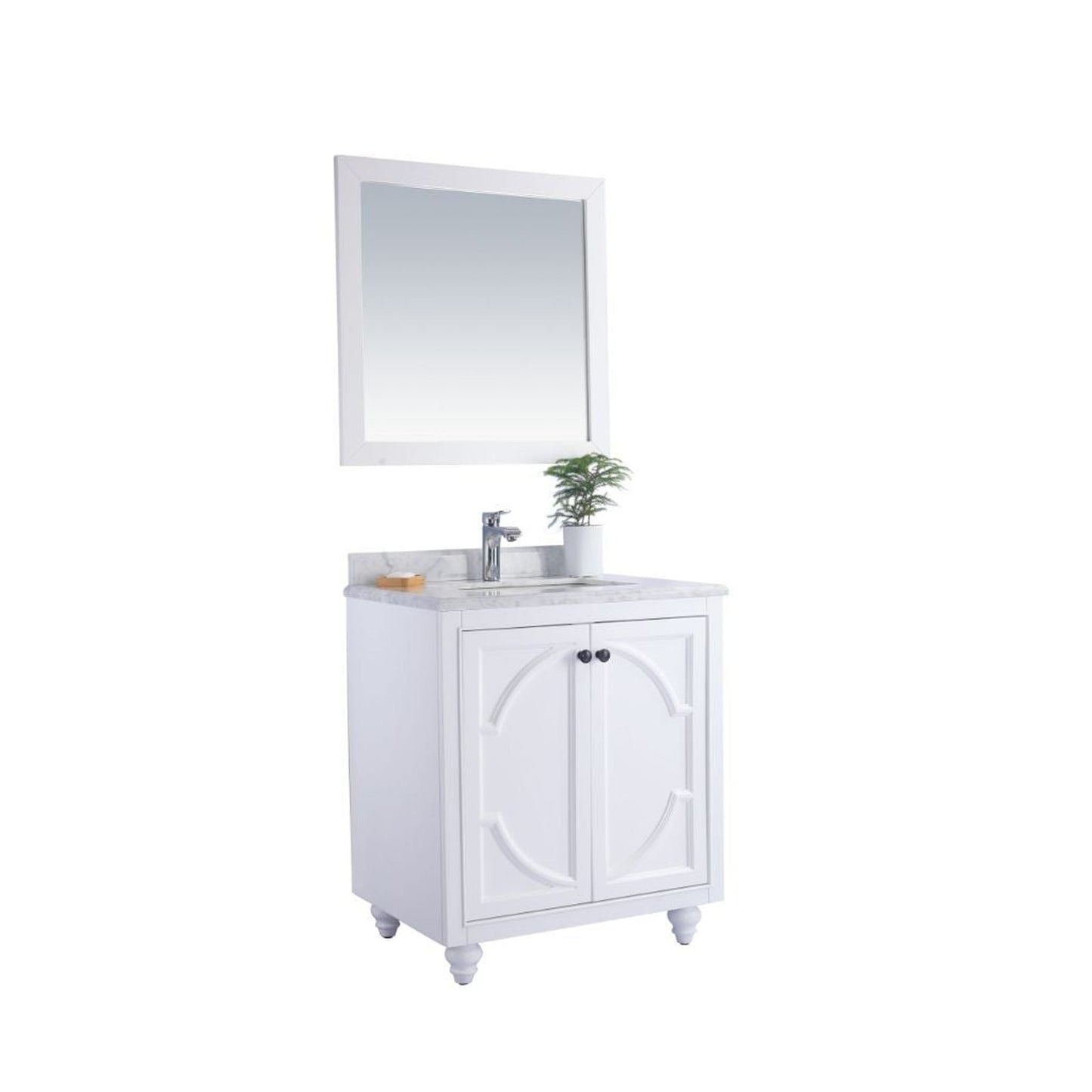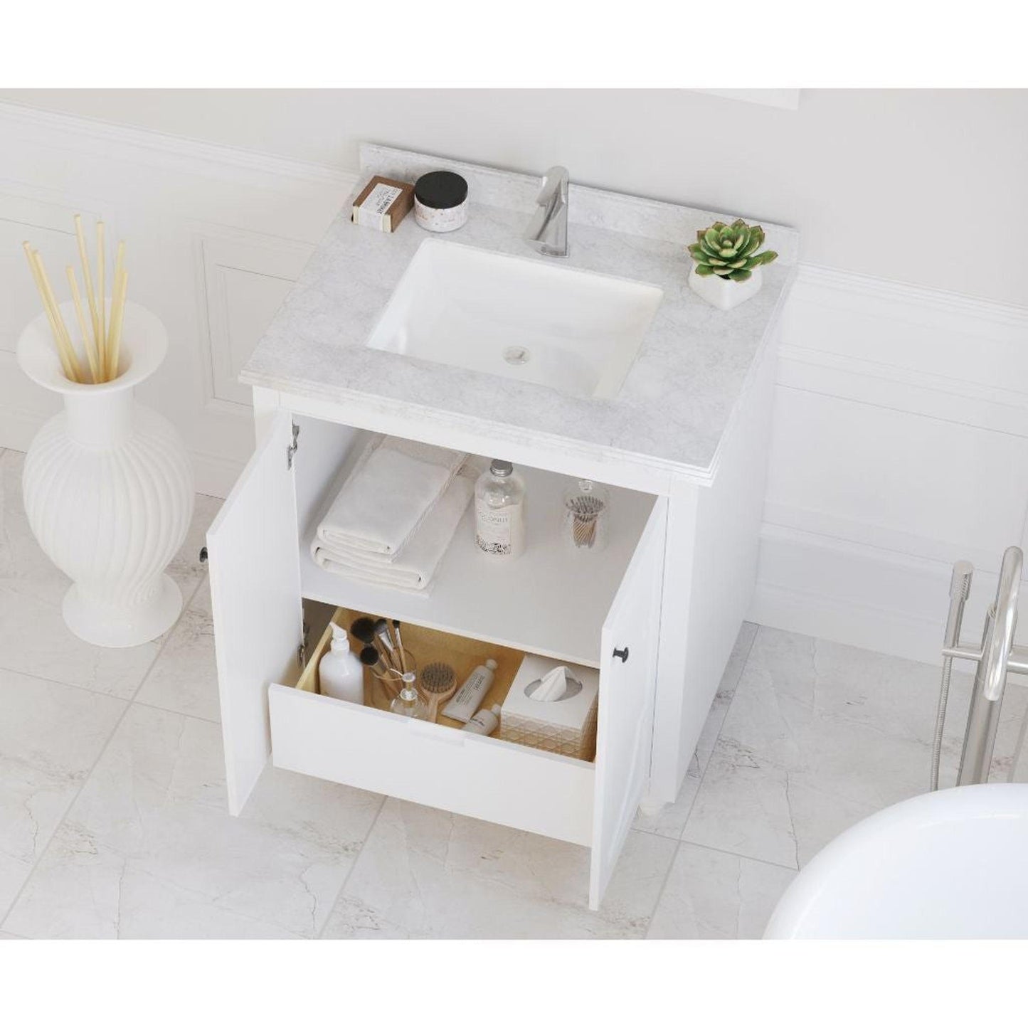 Laviva Odyssey 30" White Vanity Base and White Carrara Marble Countertop With Rectangular Ceramic Sink