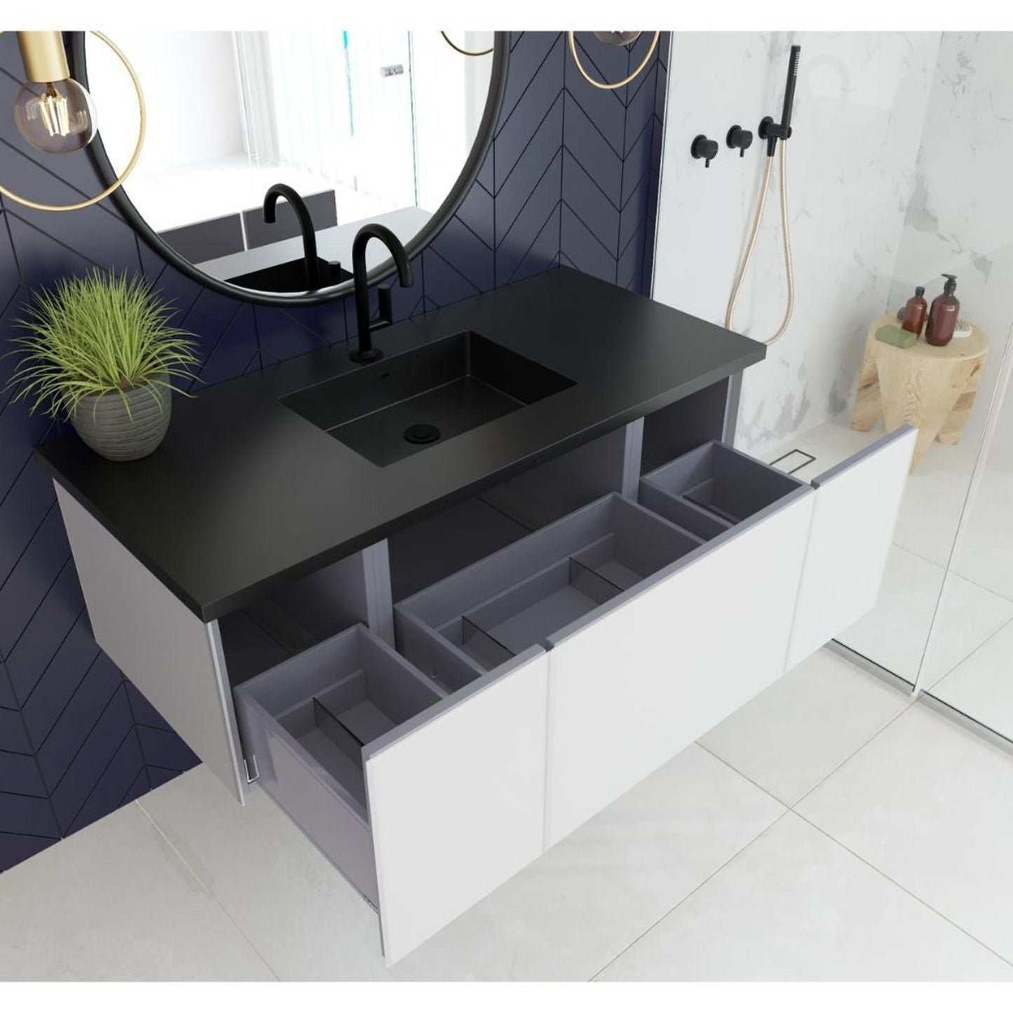 Laviva Vitri 48" Cloud White Vanity Base and Matte Black Solid Surface Countertop With Integrated Sink