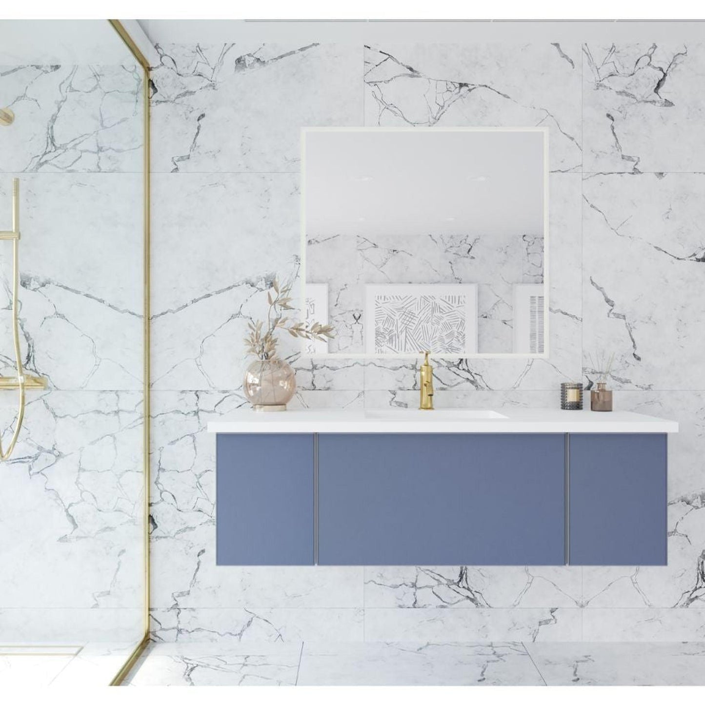 Laviva Vitri 54" Nautical Blue Vanity Base and Matte White Solid Surface Countertop With Integrated Sink