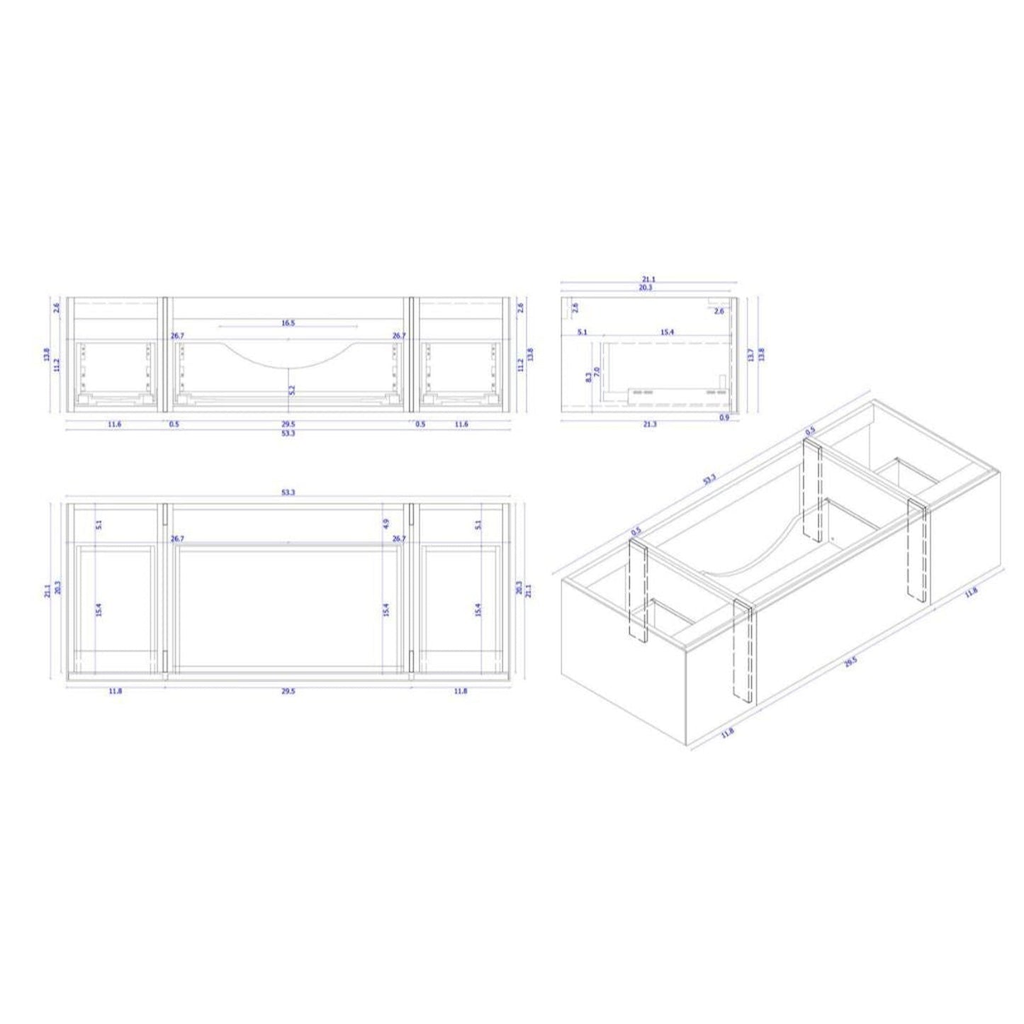 Laviva Vitri 54" Wall Mounted Vanity Base in Cloud White Finish