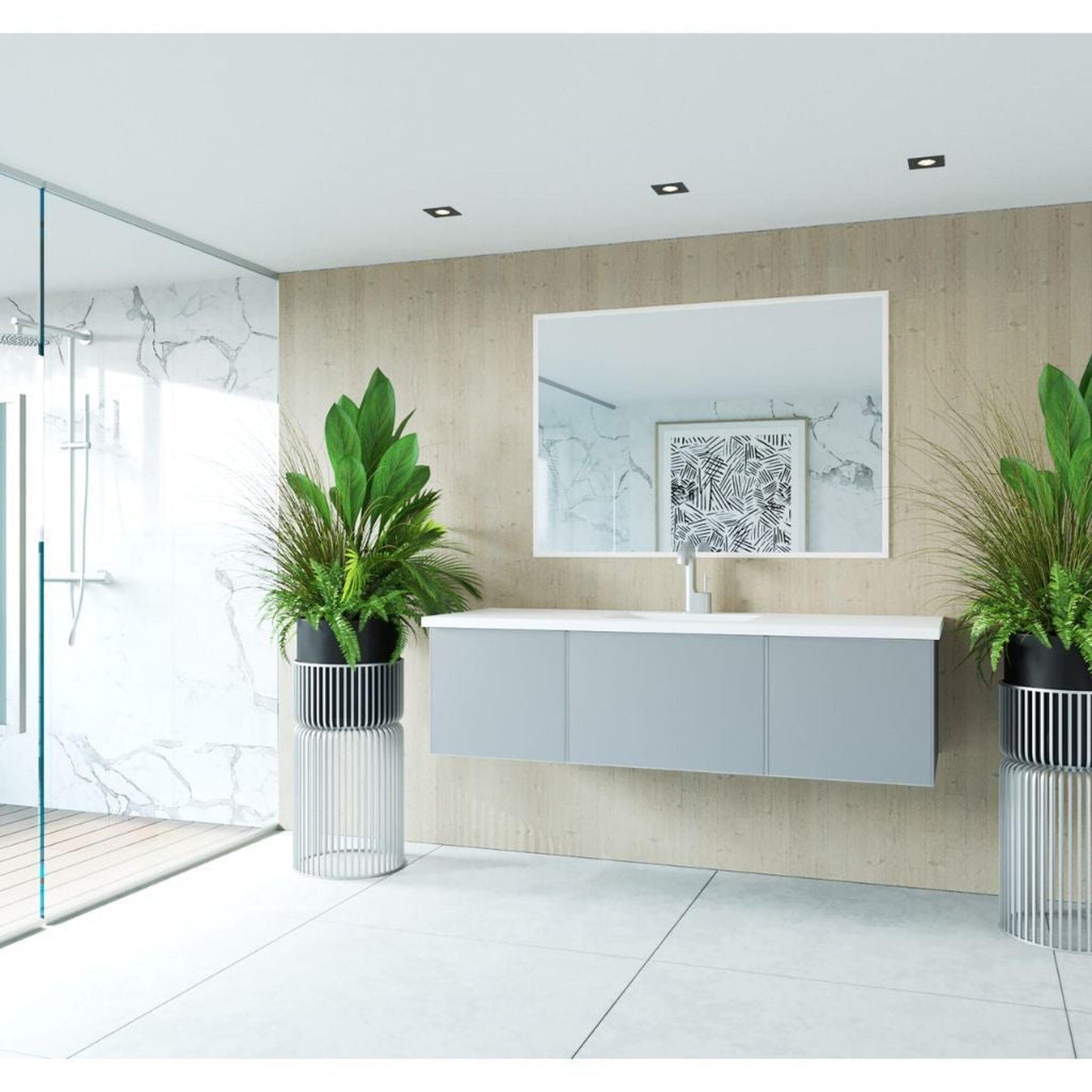 Laviva Vitri 60" Fossil Gray Vanity Base and Matte White Solid Surface Countertop With Single Integrated Sink
