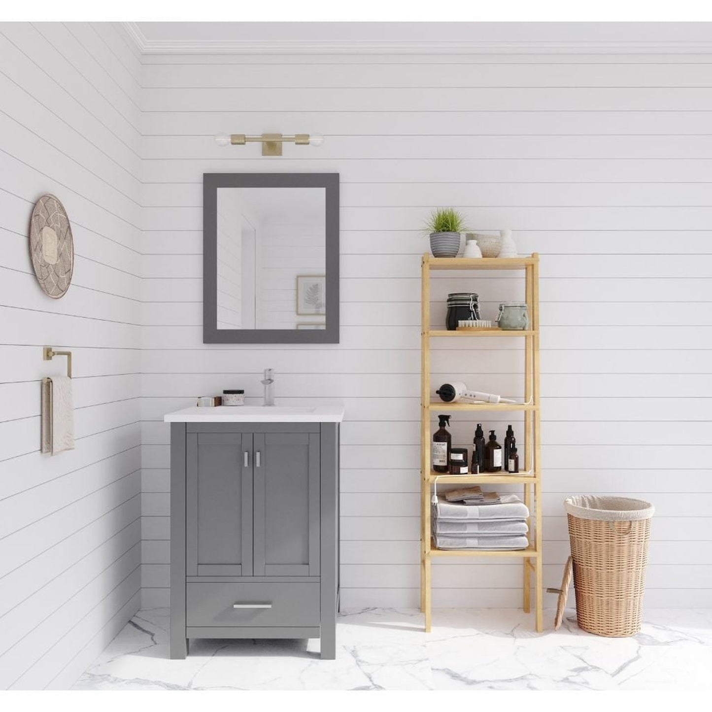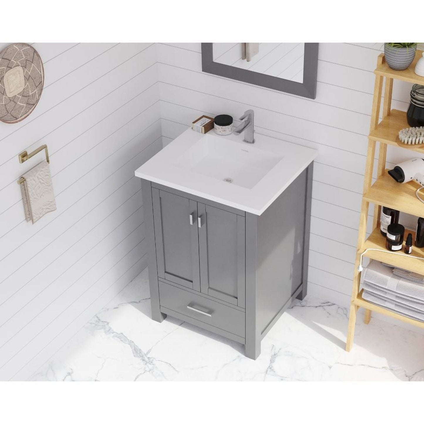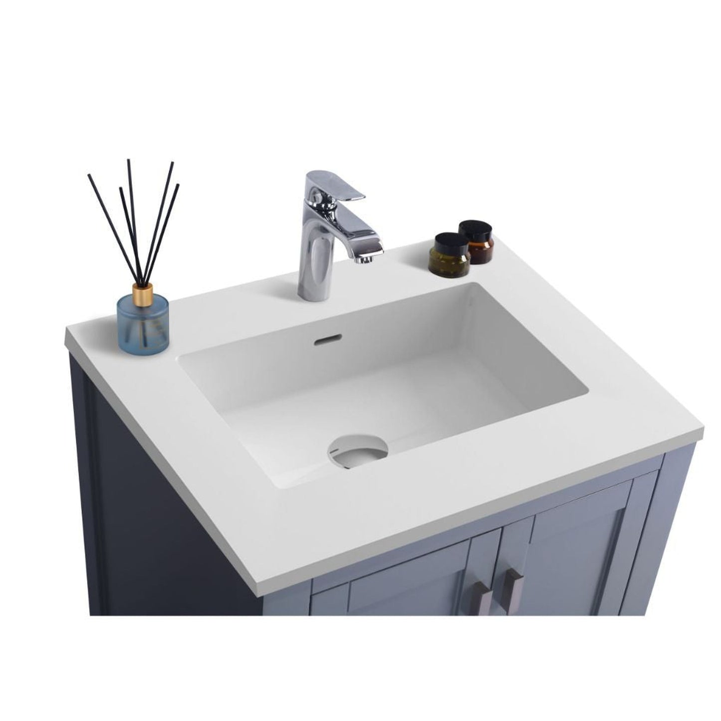Laviva Wilson 24" Gray Vanity Base and Matte White Solid Surface Countertop With Integrated Sink