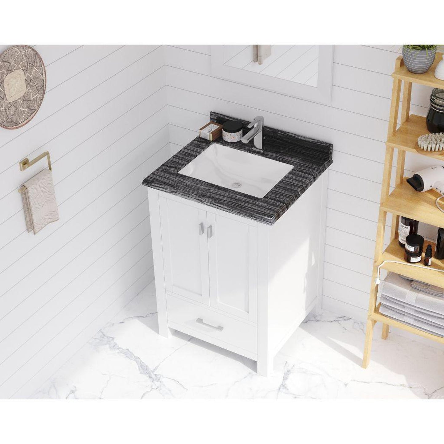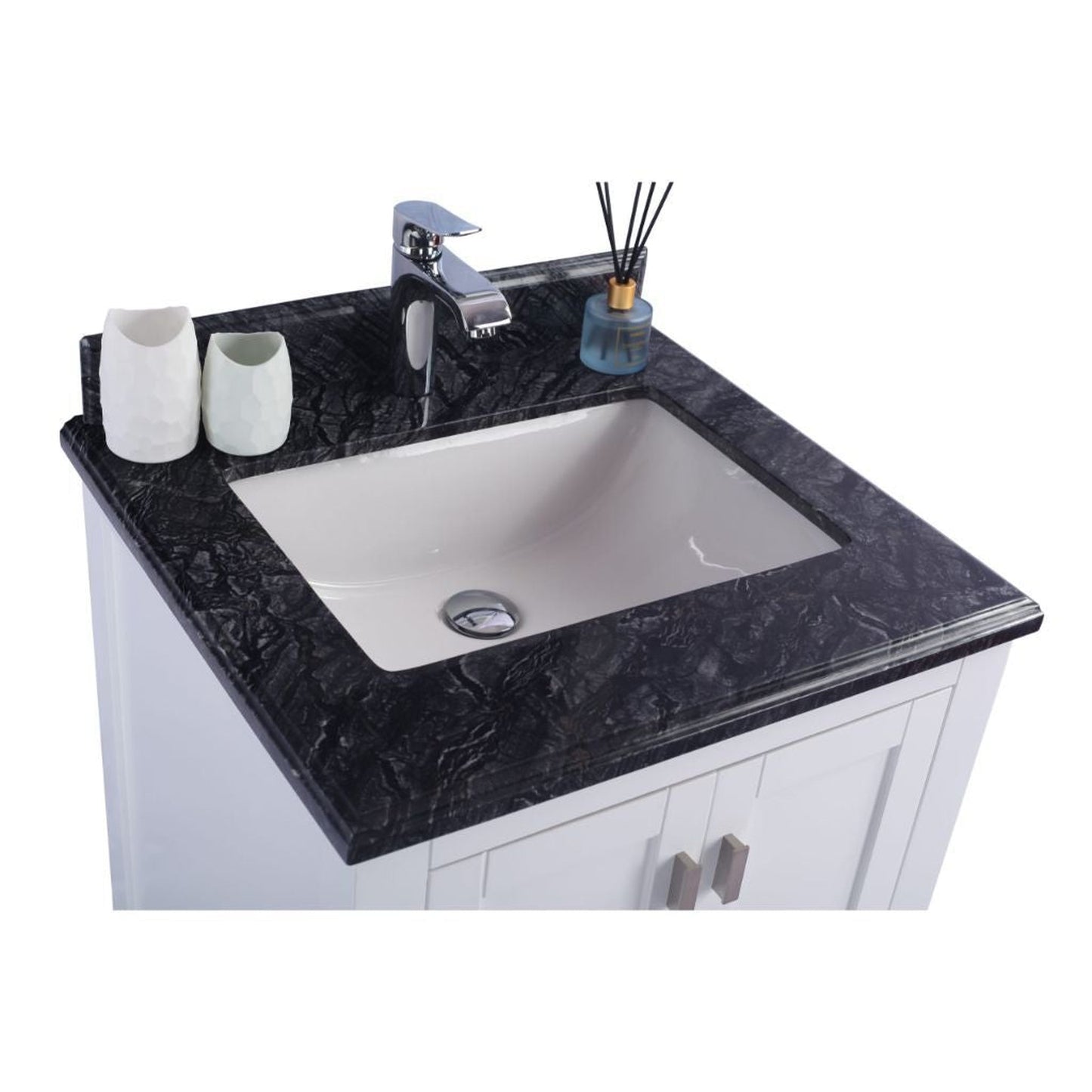 Laviva Wilson 24" White Vanity Base and Black Wood Marble Countertop With Rectangular Ceramic Sink