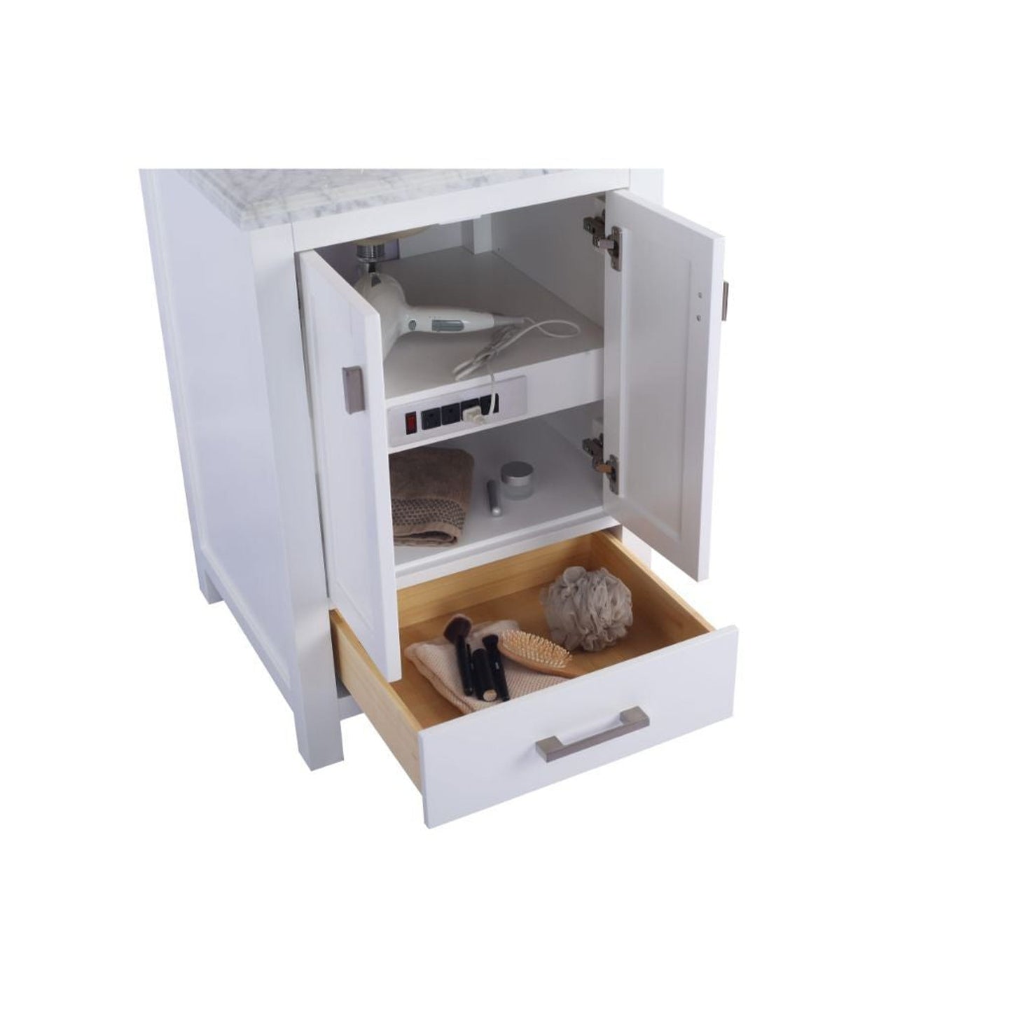 The Wilson Collection is a uniquely simple yet attractive collection. It features recessed panel doors with a shaker-style design that is inset within the cabinet frame. The shaker-style cabinets are inspired by the furniture designed by the Shakers, who were extremely skilled craftsmen and carpenters. Not sacrificing quality, the Wilson Collection is constructed with solid Oak wood, includes high-quality soft closing rails and hinges, and a solid wood dovetail construction drawers. Additionally, with functionality in mind, there is a 4 outlets plug to keep all your electronics plugged in and ready to use. This collection offers a variety of colors and sizes to fit your bathroom.