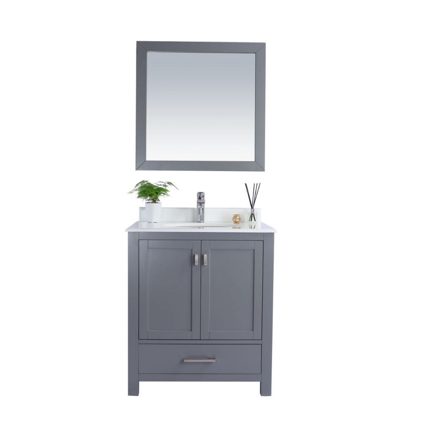Laviva Wilson 30" Gray Vanity Base and Pure White Phoenix Stone Countertop With Oval Ceramic Sink