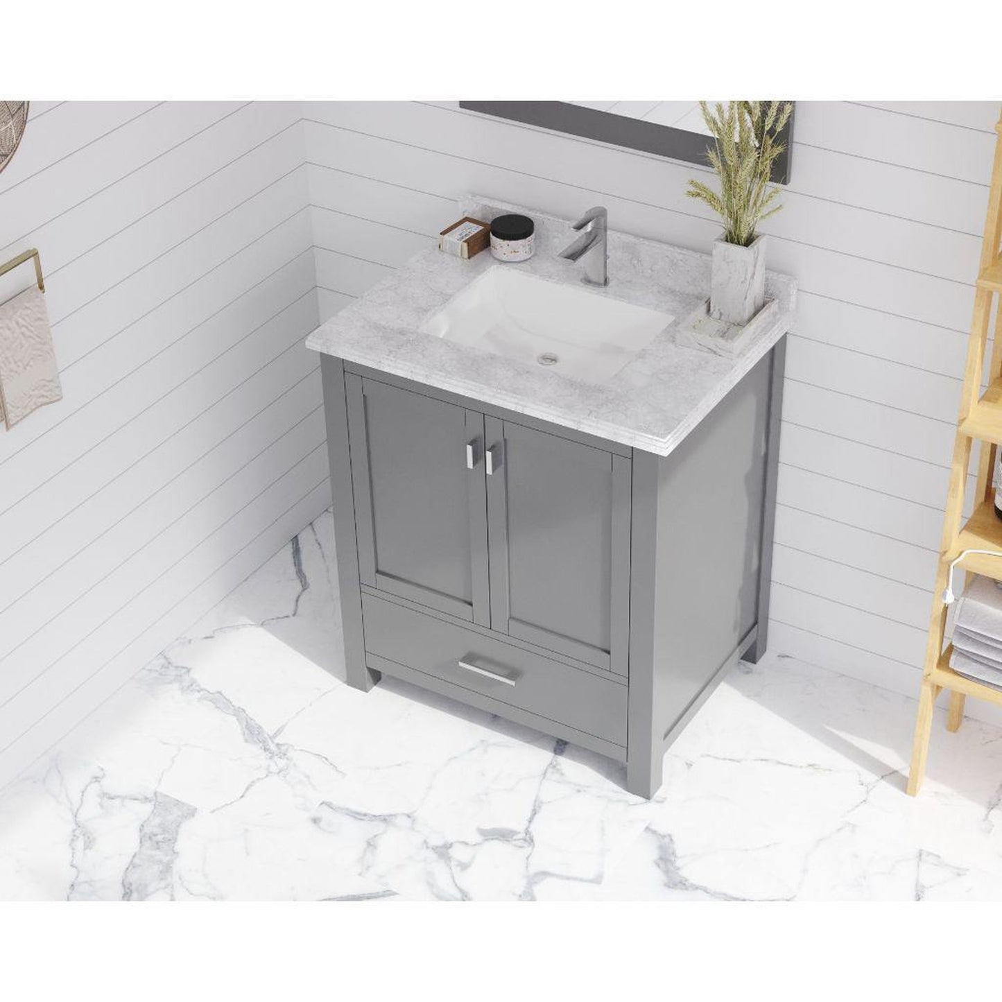 Laviva Wilson 30" Gray Vanity Base and White Carrara Marble Countertop With Rectangular Ceramic Sink