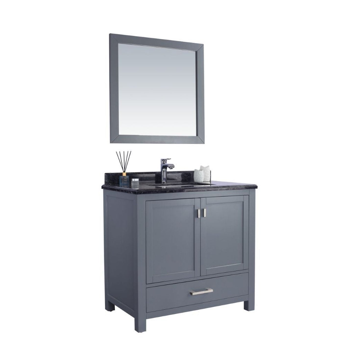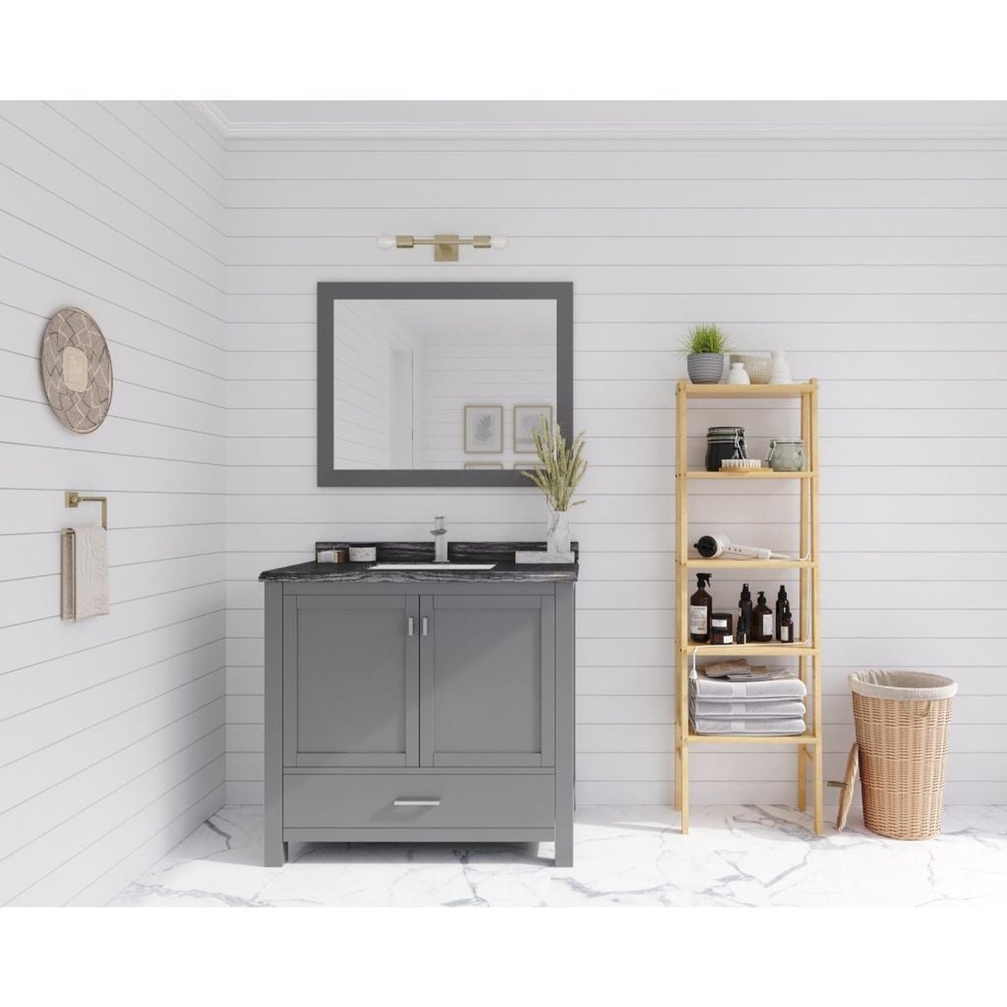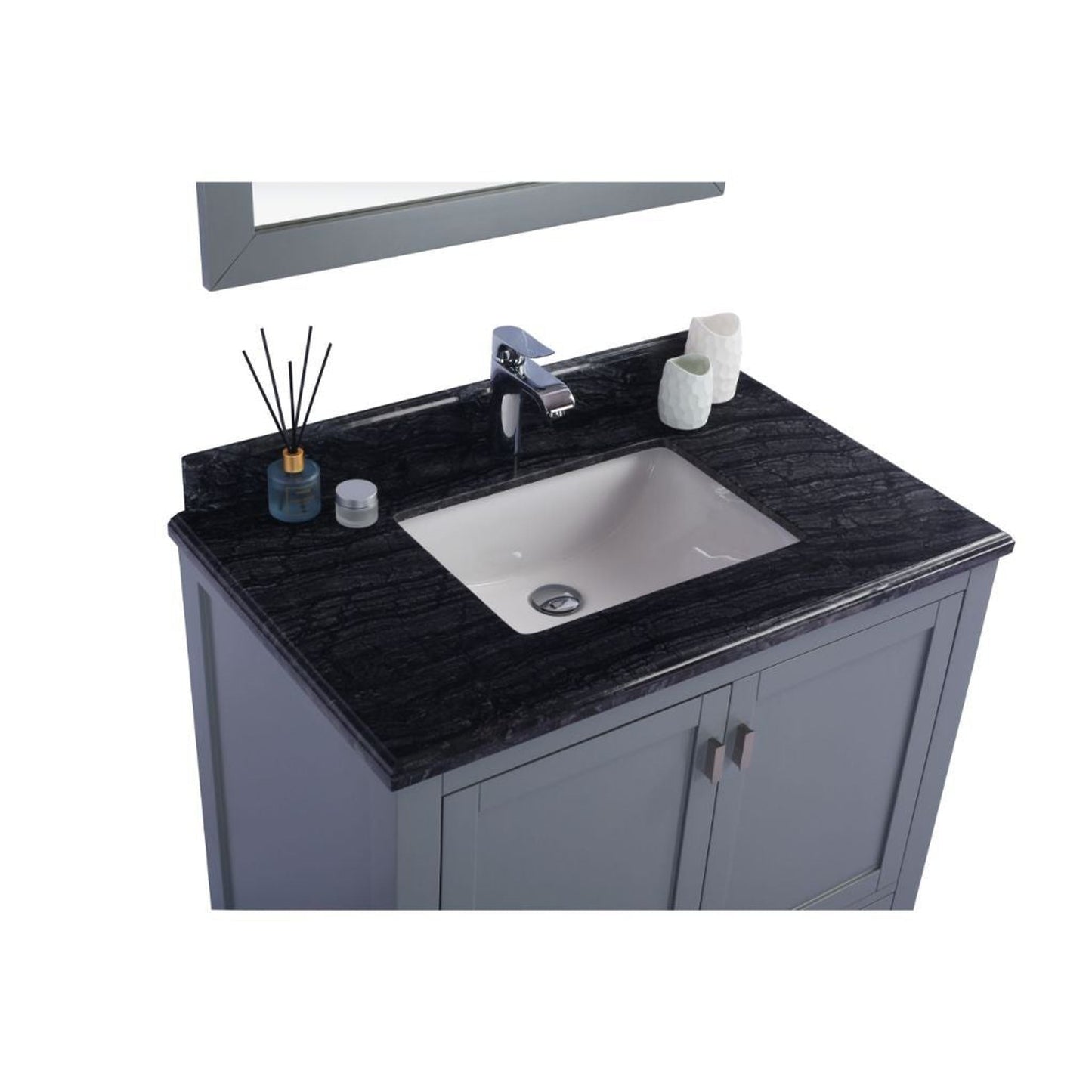 Laviva Wilson 36" Gray Vanity Base and Black Wood Marble Countertop With Rectangular Ceramic Sink