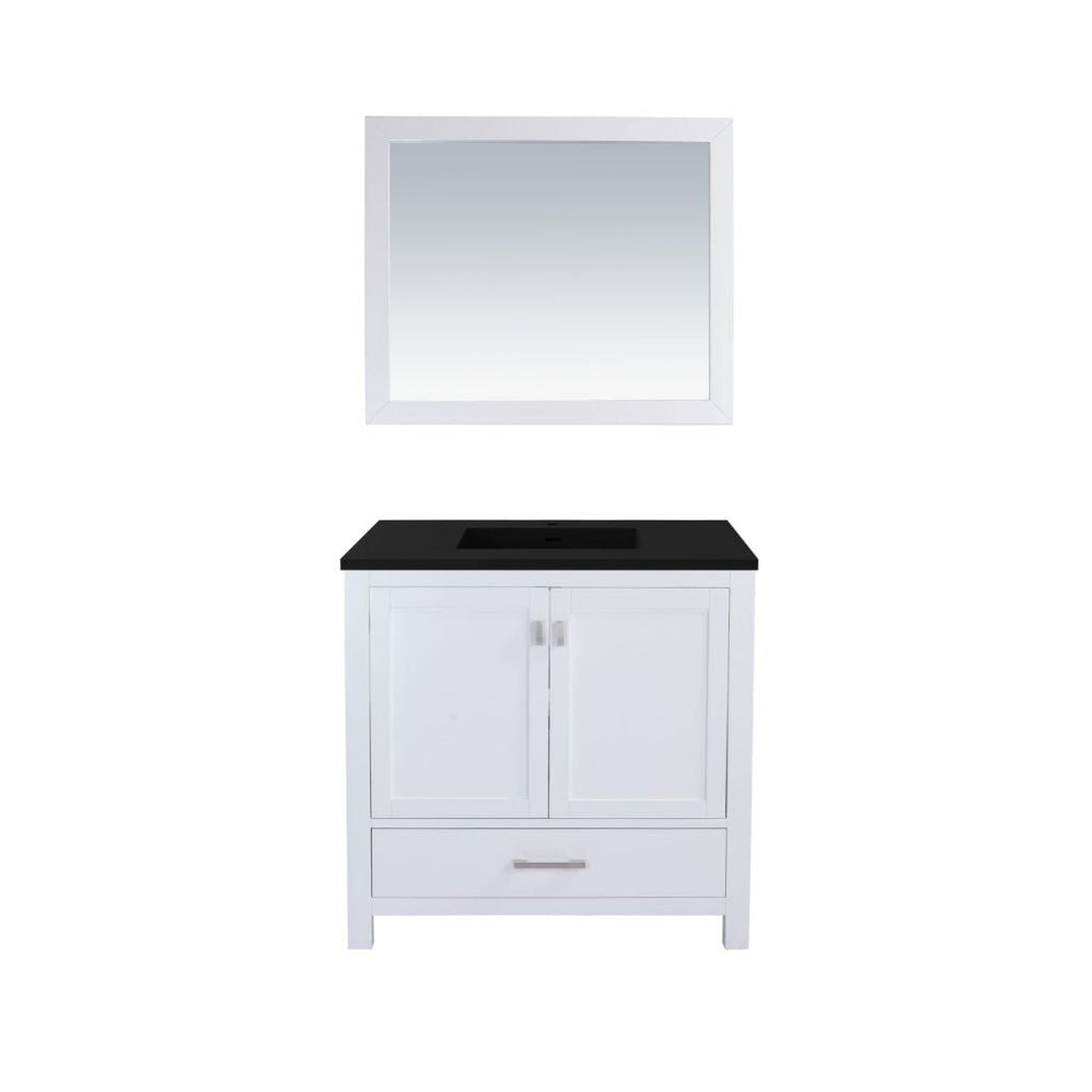 Laviva Wilson 36" White Vanity Base and Matte Black Viva Stone Solid Surface Countertop With Integrated Sink