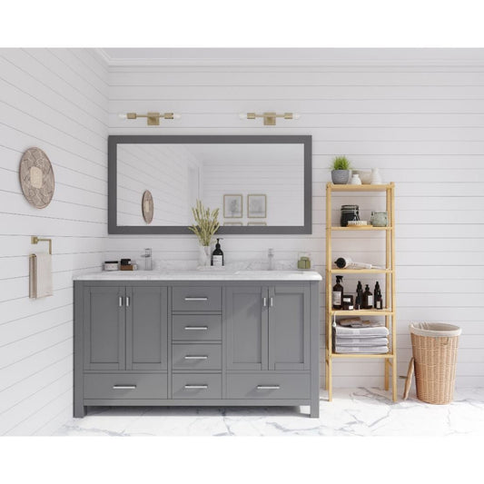 Laviva Wilson 60" Gray Vanity Base and White Carrara Marble Countertop With Double Rectangular Ceramic Sinks