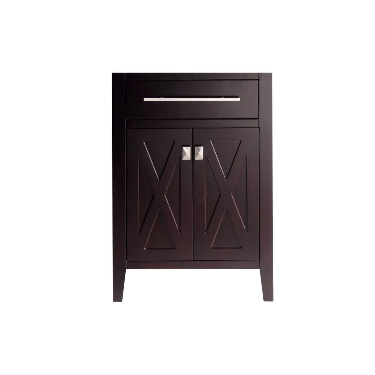 A no-frills example of a classy act, that’s confident of its clean and simple style, is the Wimbledon Collection. “X” does marks the spot of the two doors front and centered showcase. Its elegant and refined contribution is exhibited by it unique towel bar handles on the top of the cabinet. Once you open the doors, you’ll be surprised by the dual levels of shelves and the humongous space for storage. With your selection of the Wimbledon collection, you’ll become the champion of your selective taste. You’ll know you’ve scored highest by your guest’s compliments! Available in single sink option in 24" and 36" or double sink option in 60". Also available in the following finishes: Brown, White, Espresso, and Grey.