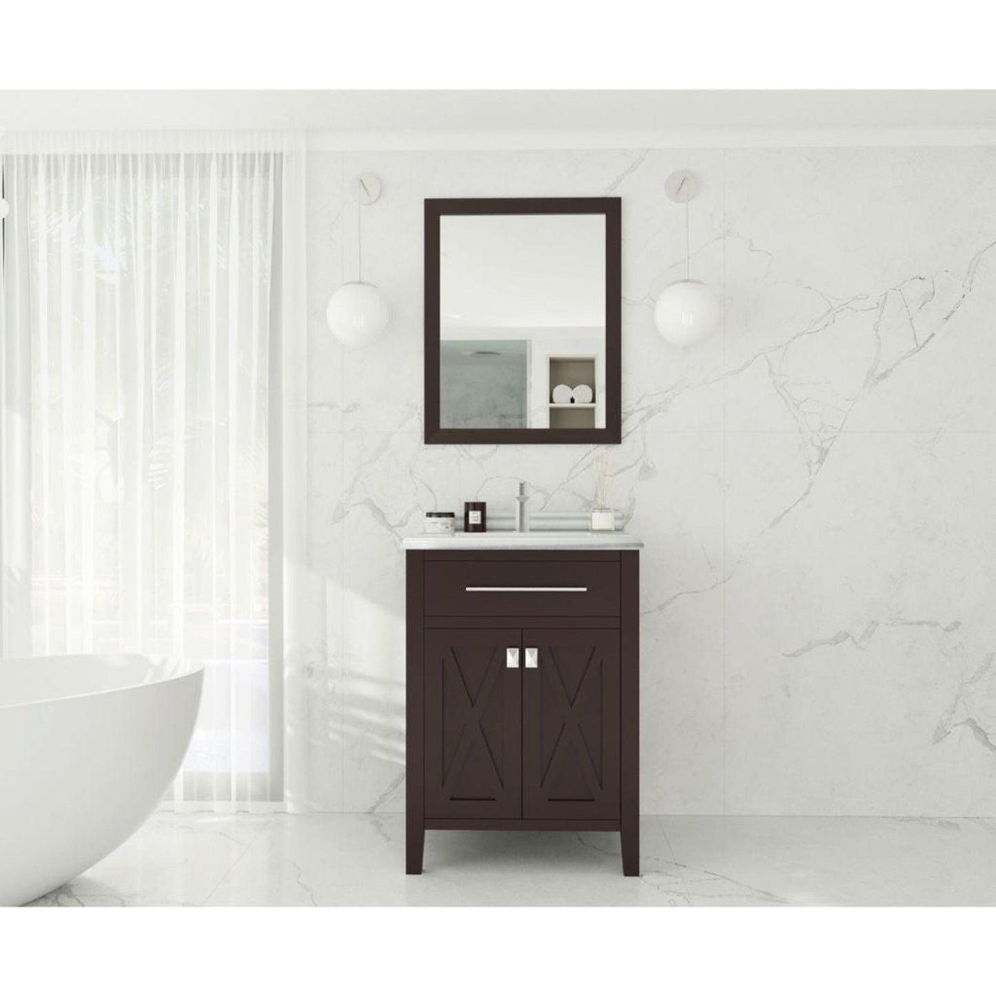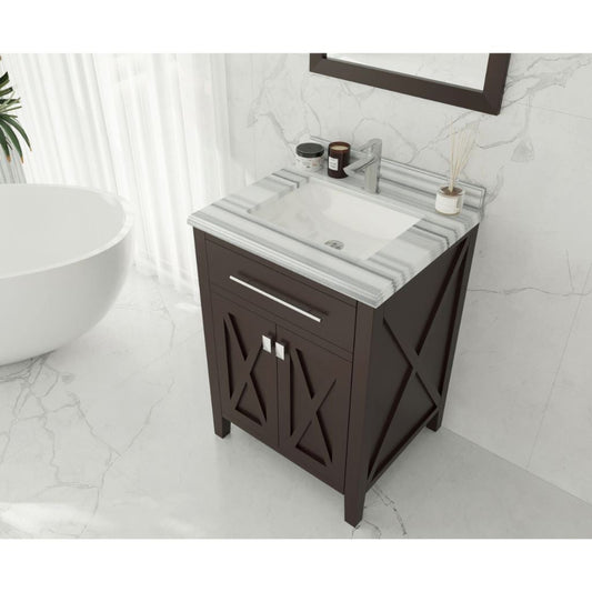 Laviva Wimbledon 24" Brown Vanity Base and White Stripes Marble Countertop With Rectangular Ceramic Sink