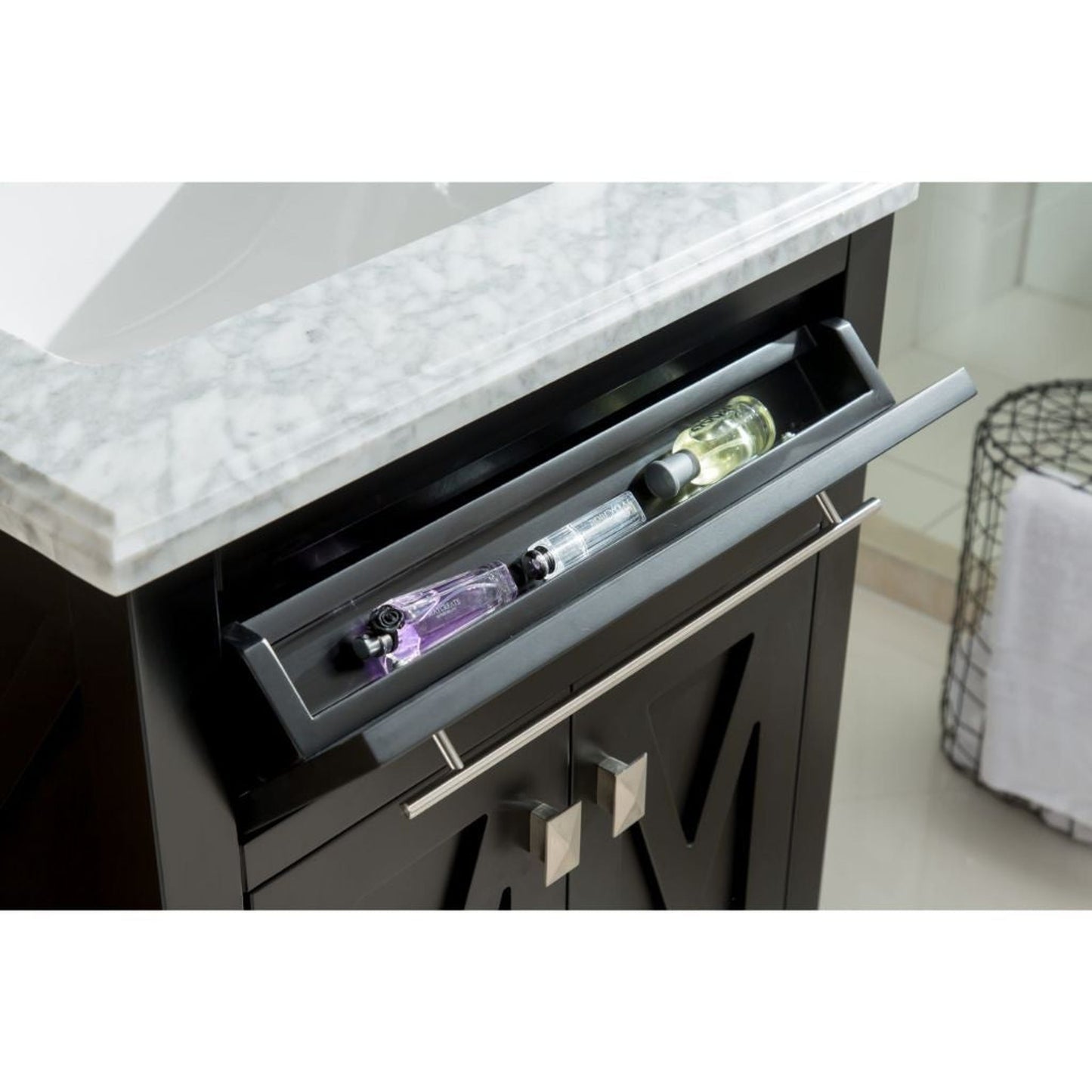 A no-frills example of a classy act, that’s confident of its clean and simple style, is the Wimbledon Collection. “X” does marks the spot of the two doors front and centered showcase. Its elegant and refined contribution is exhibited by it unique towel bar handles on the top of the cabinet. Once you open the doors, you’ll be surprised by the dual levels of shelves and the humongous space for storage. With your selection of the Wimbledon collection, you’ll become the champion of your selective taste. You’ll know you’ve scored highest by your guest’s compliments! Available in single sink option in 24" and 36" or double sink option in 60". Also available in the following finishes: Brown, White, Espresso, and Gray.
