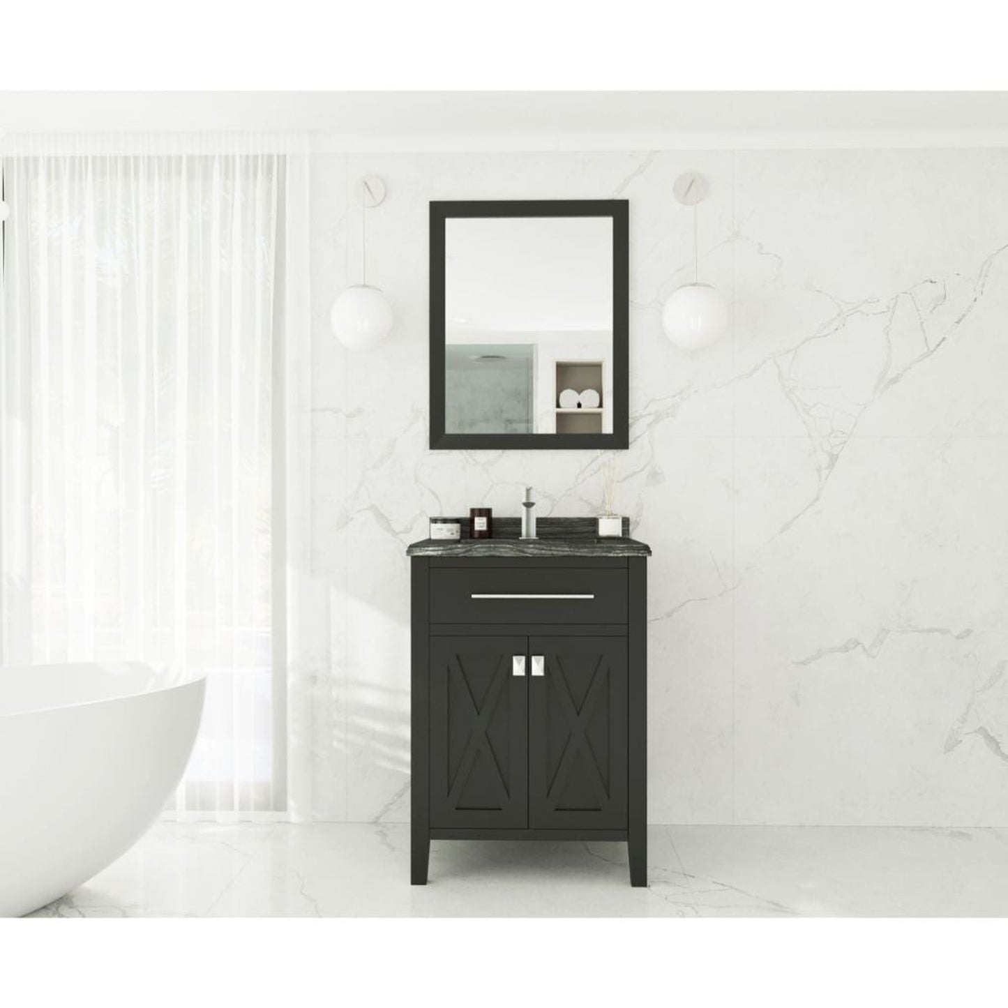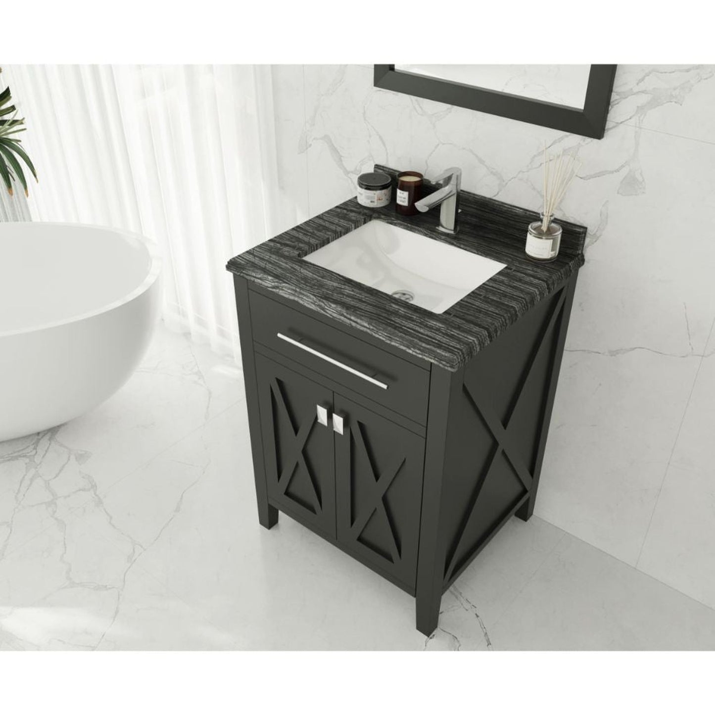 Laviva Wimbledon 24" Espresso Vanity Base and Black Wood Marble Countertop With Rectangular Ceramic Sink