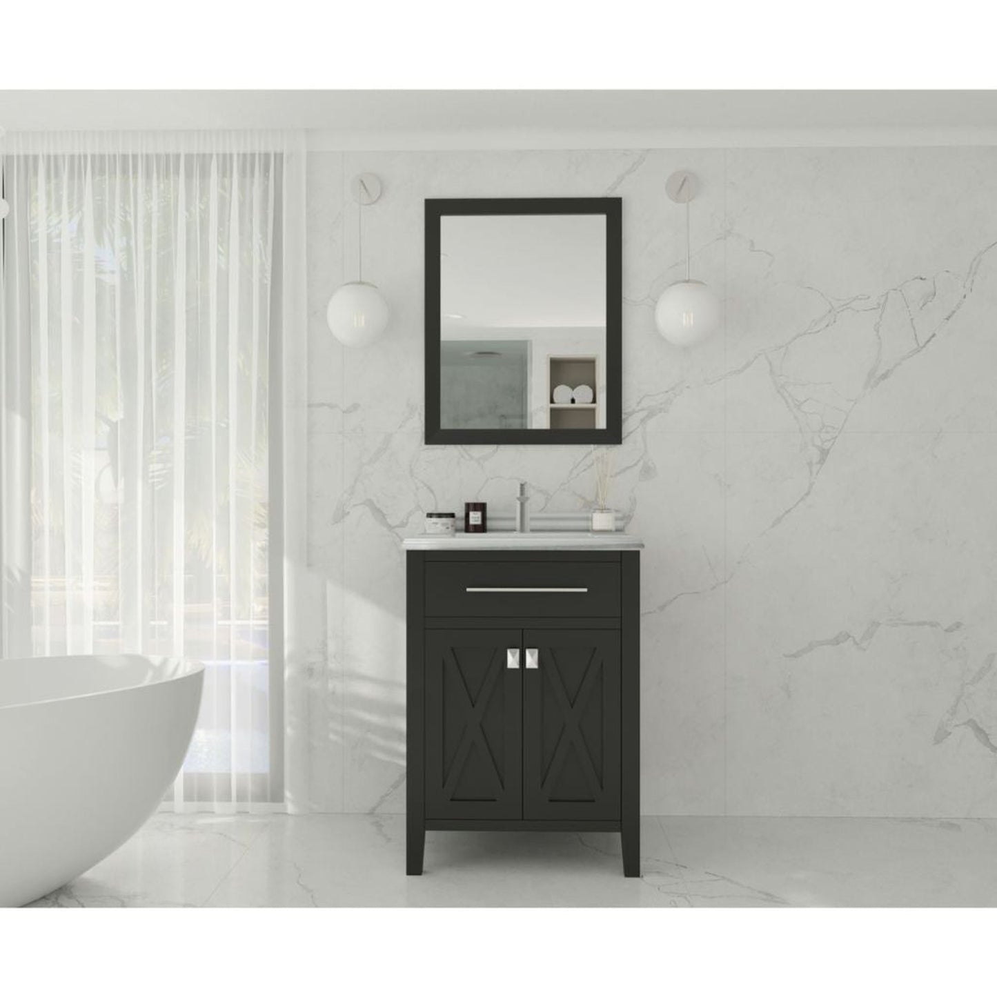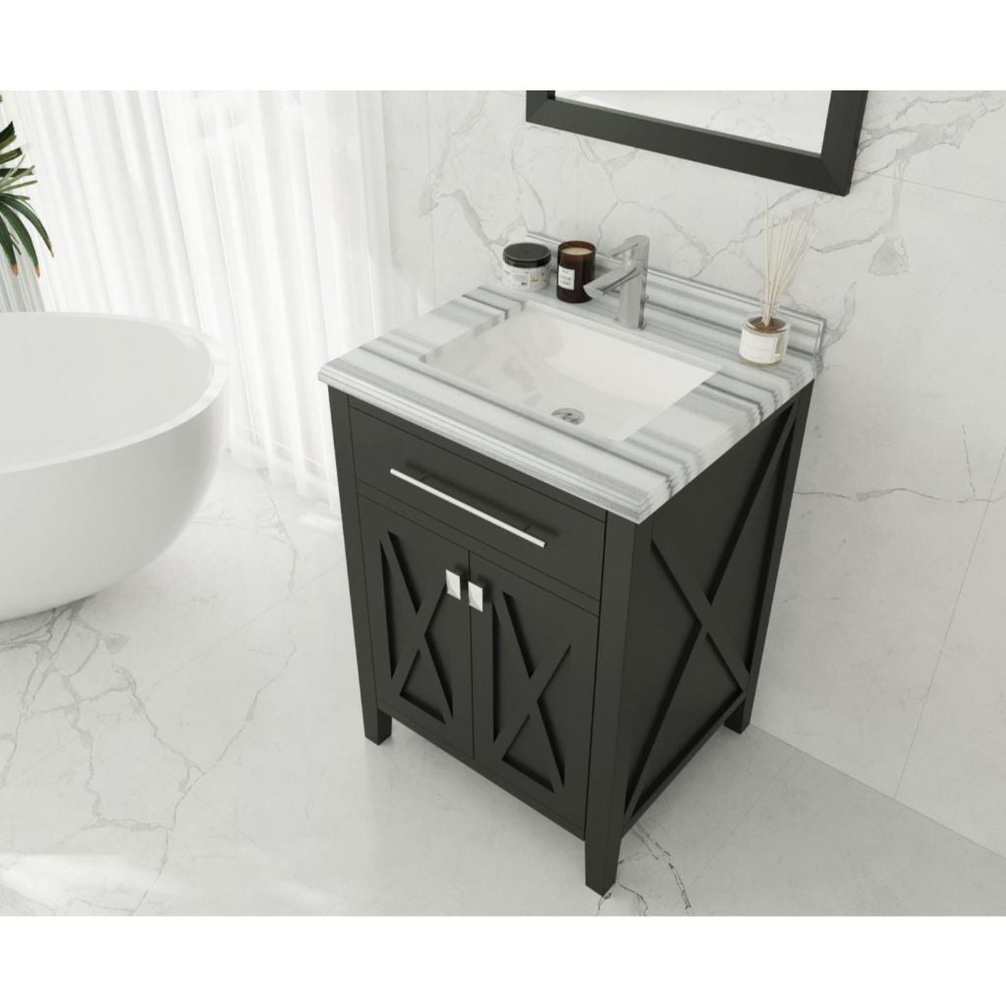 Laviva Wimbledon 24" Espresso Vanity Base and White Stripes Marble Countertop With Rectangular Ceramic Sink