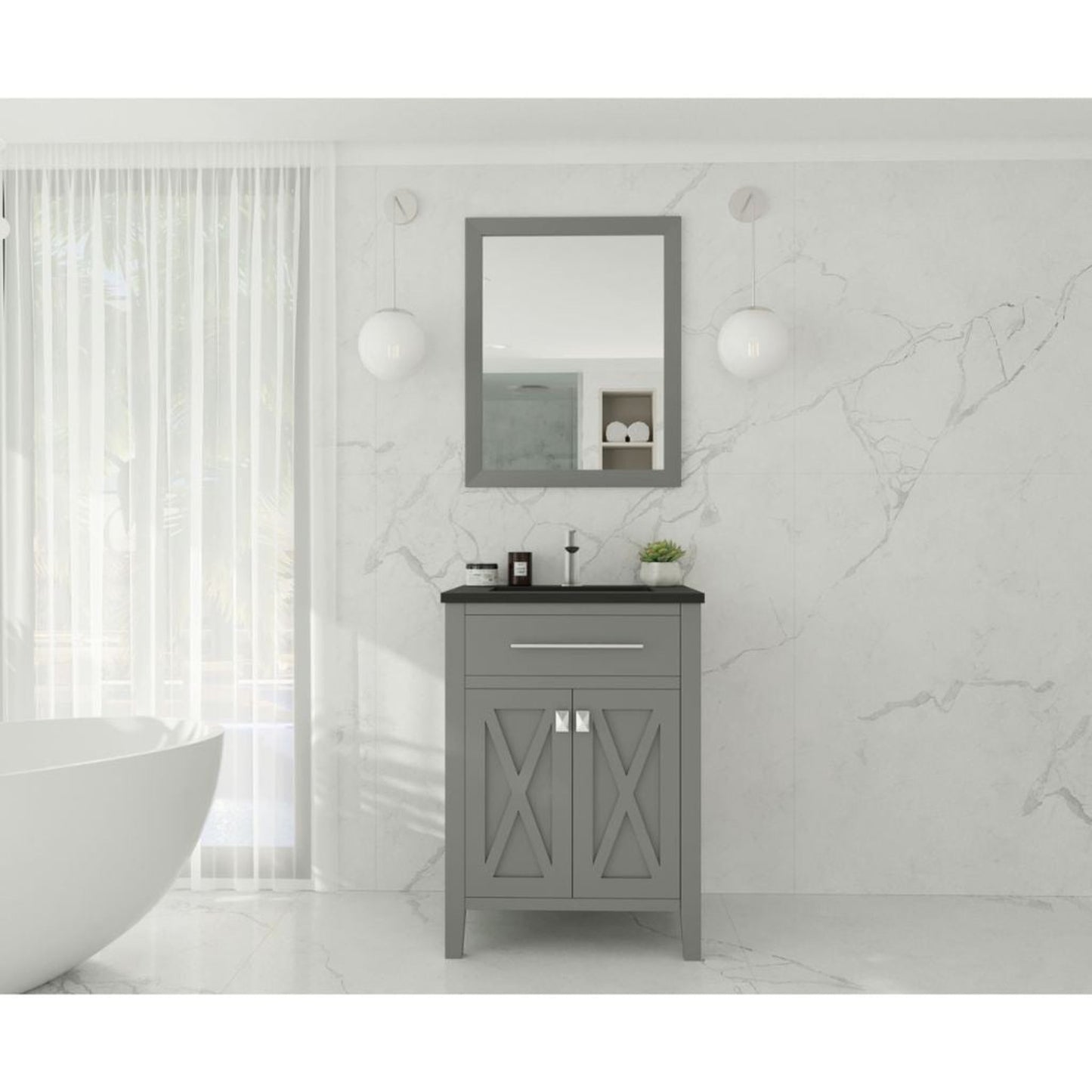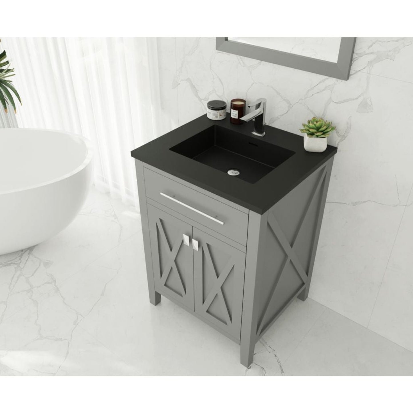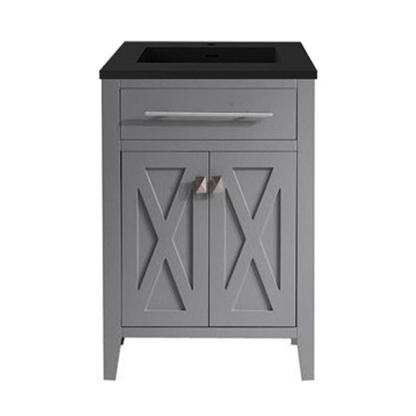 Laviva Wimbledon 24" Gray Vanity Base and Matte Black Viva Stone Solid Surface Countertop With Integrated Sink
