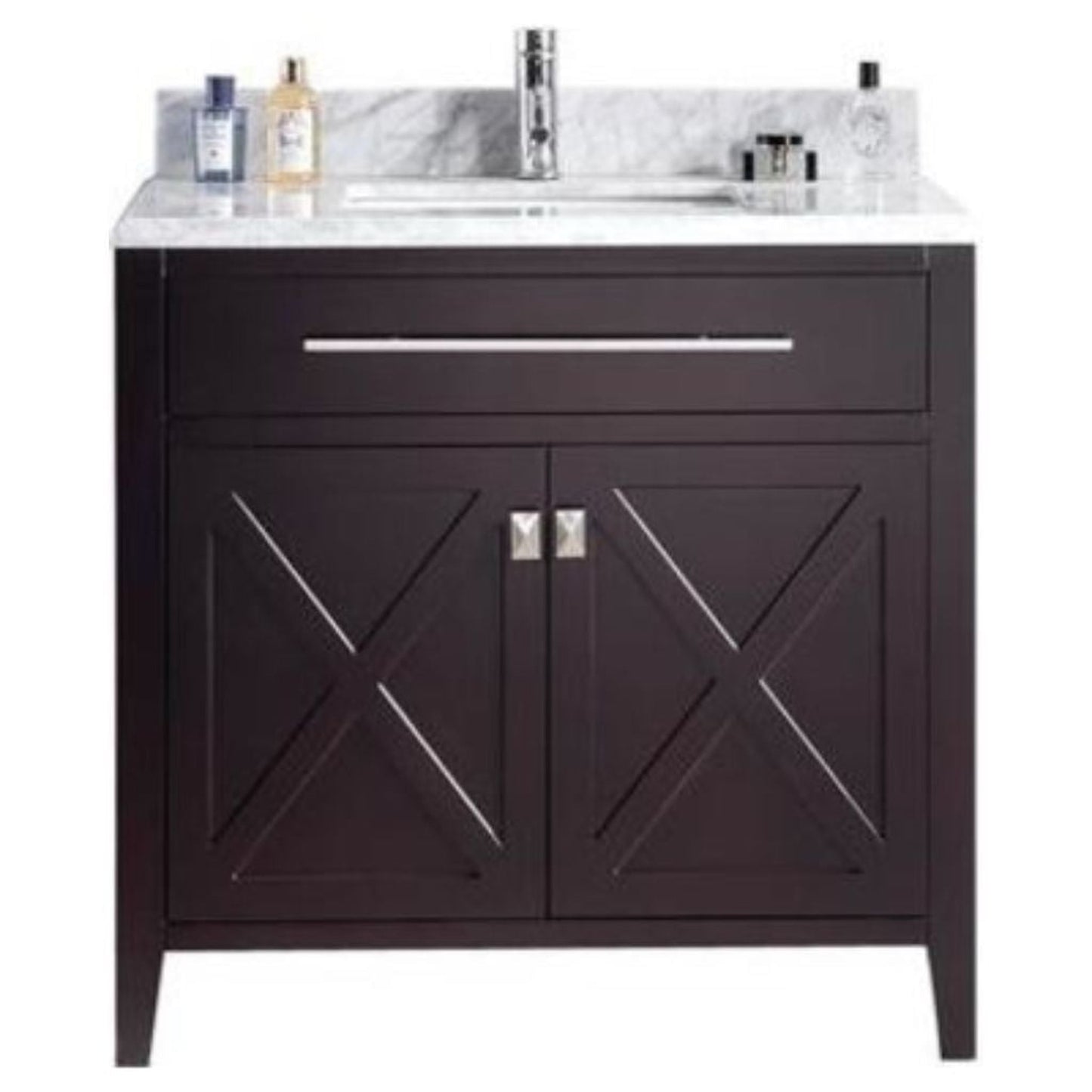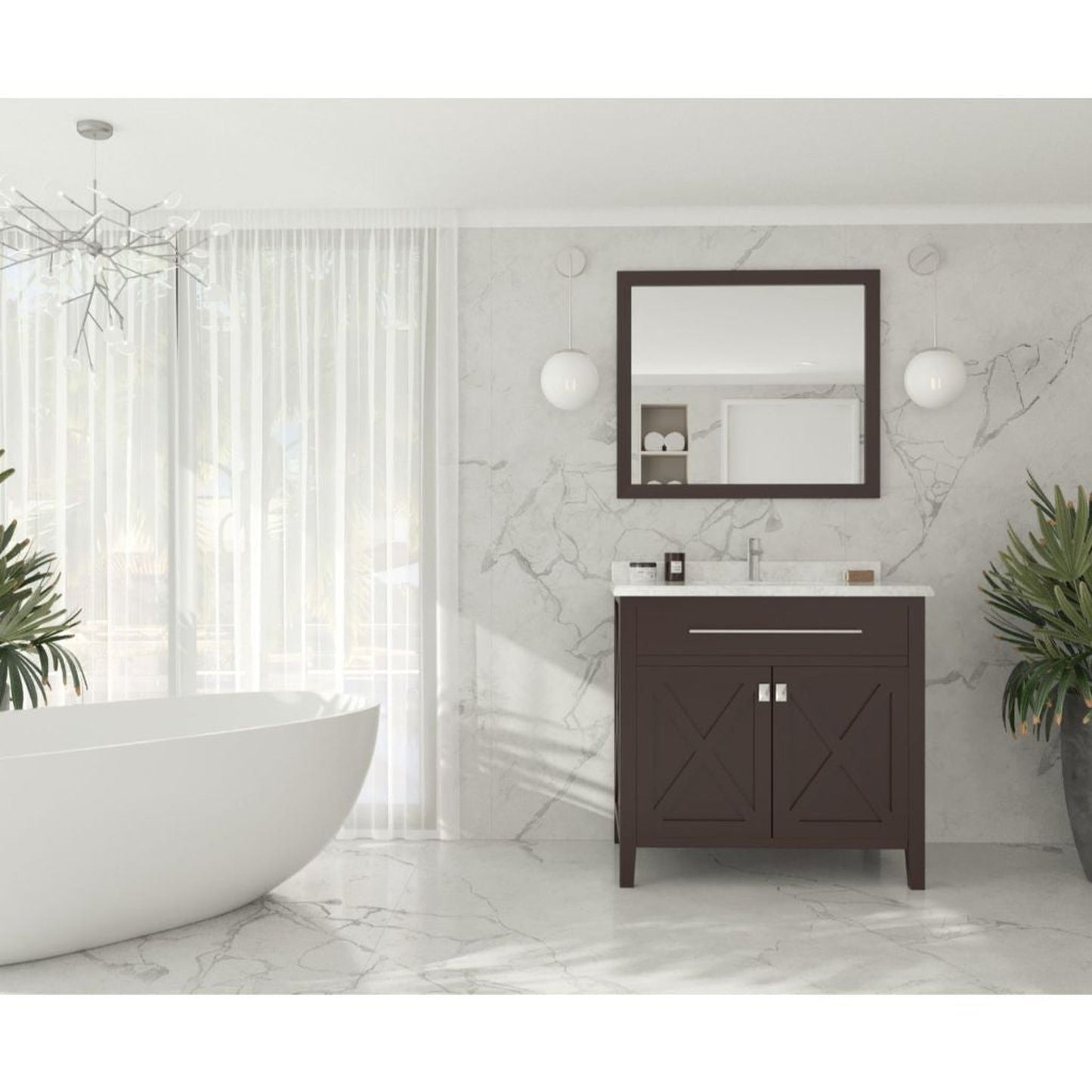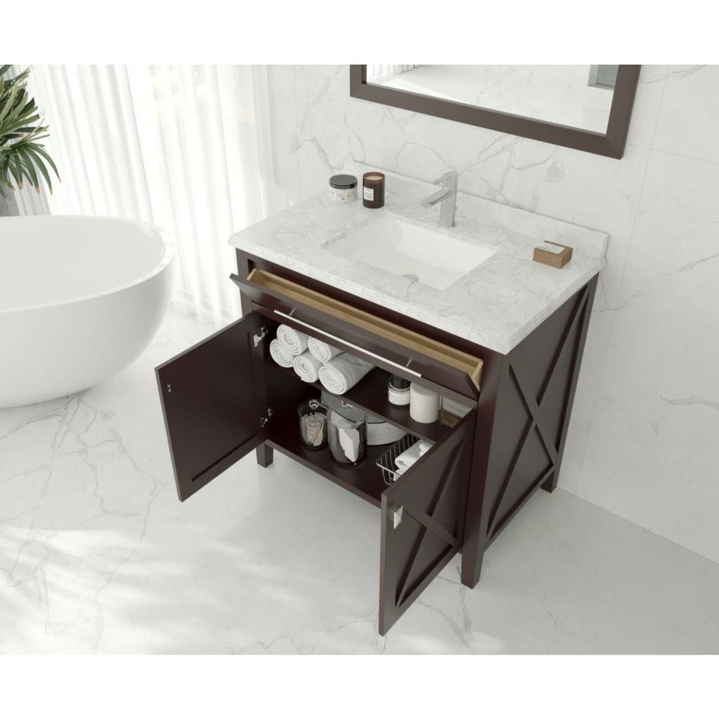 Laviva Wimbledon 36" Brown Vanity Base and White Carrara Marble Countertop With Rectangular Ceramic Sink