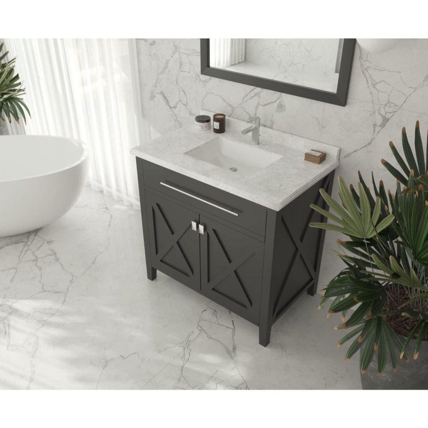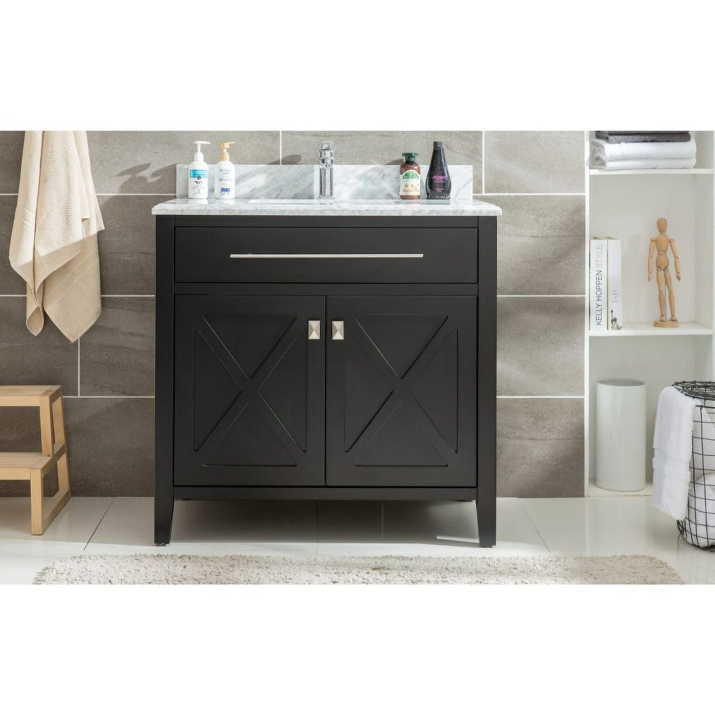 Laviva Wimbledon 36" Espresso Vanity Base and White Carrara Marble Countertop With Rectangular Ceramic Sink