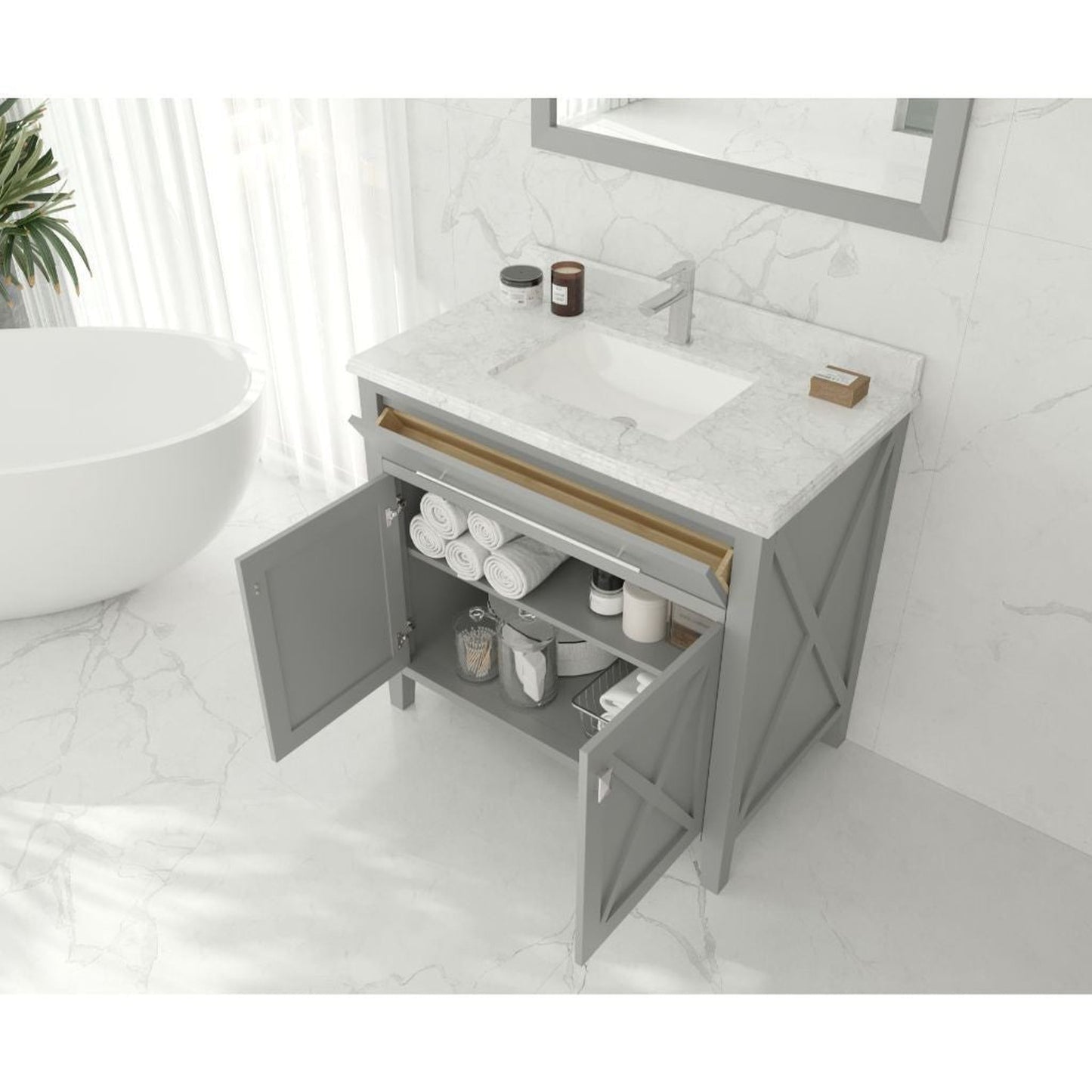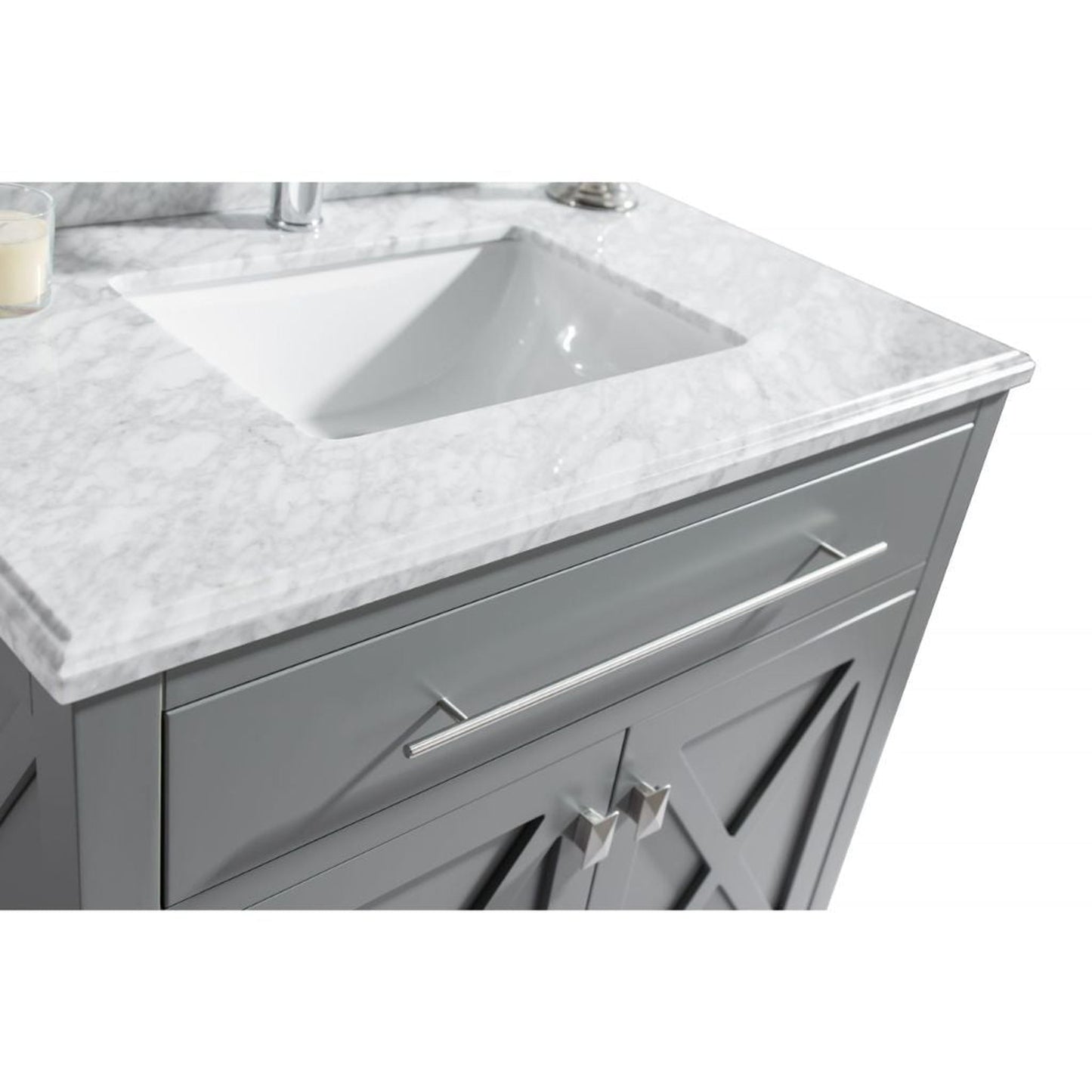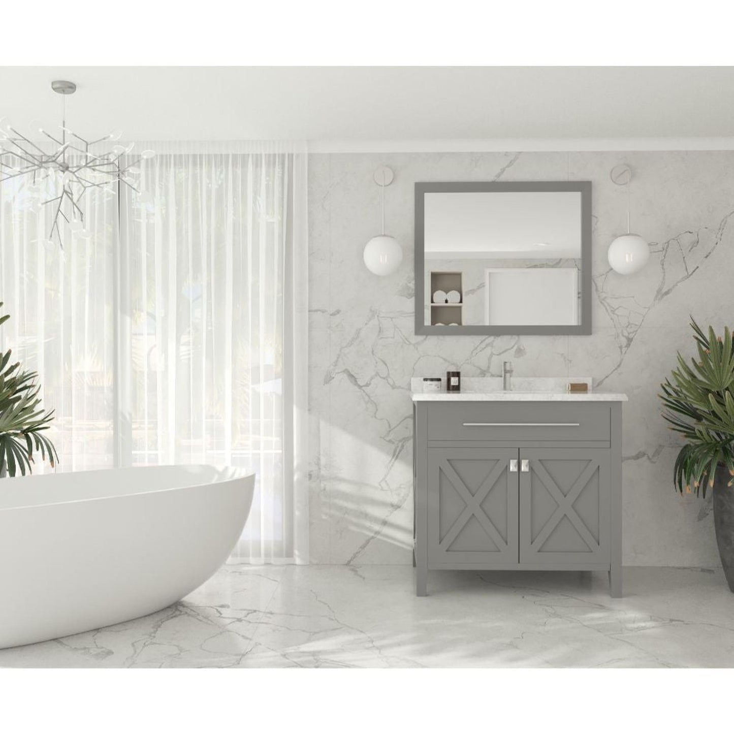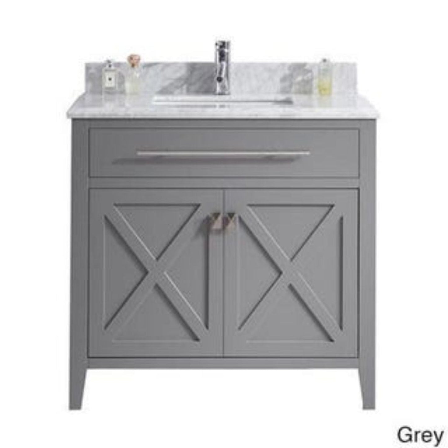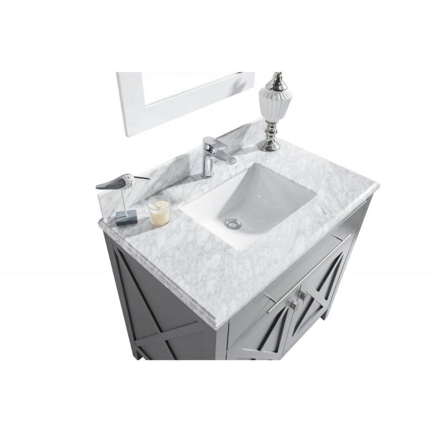 Laviva Wimbledon 36" Gray Vanity Base and White Carrara Marble Countertop With Rectangular Ceramic Sink