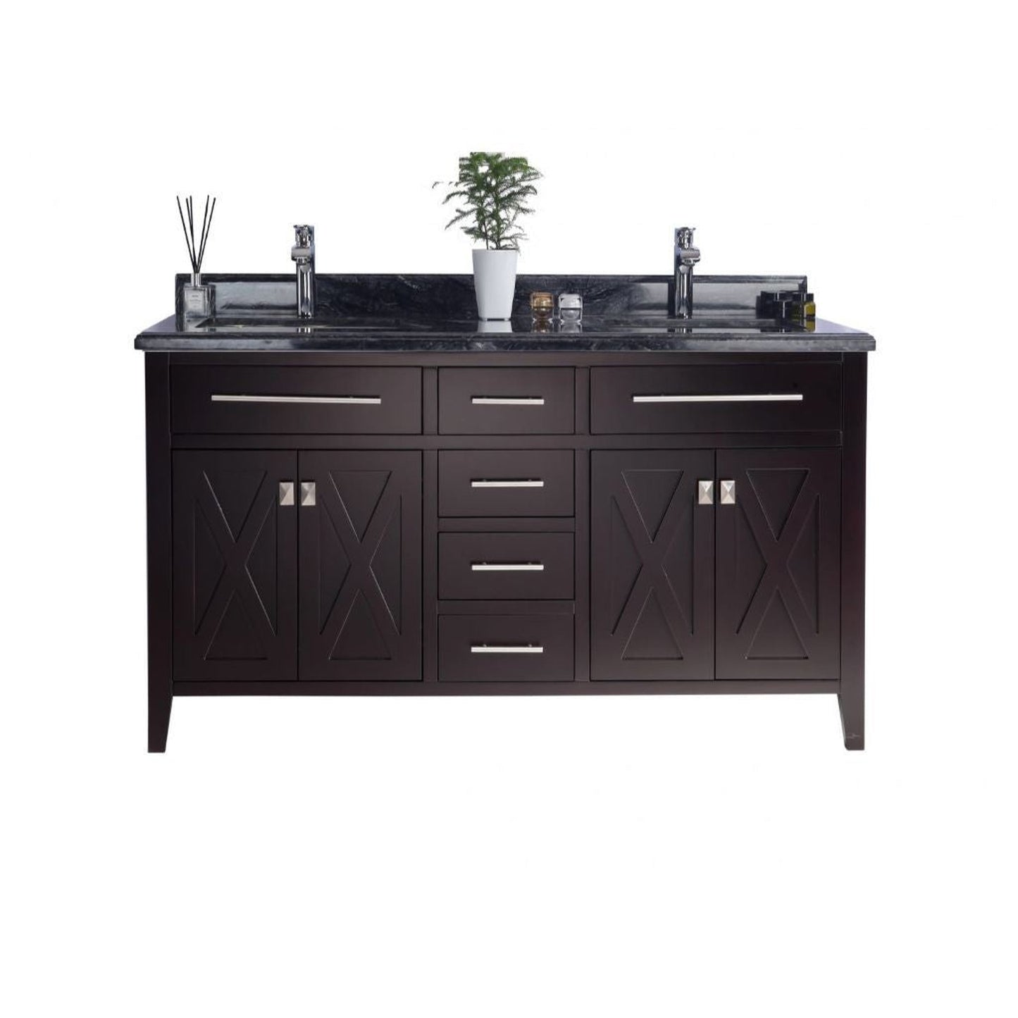 Laviva Wimbledon 60" Brown Vanity Base and Black Wood Marble Countertop With Double Rectangular Ceramic Sinks