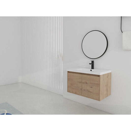 Legion Furniture 30" Natural Wood Wall Mounted Vanity With White Gel Coat Basin