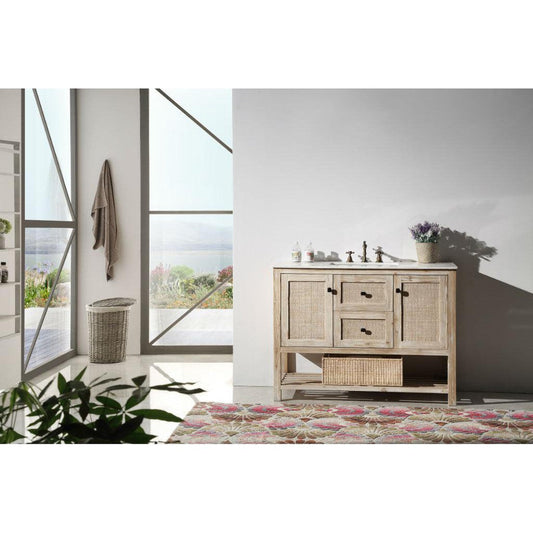 Legion Furniture 48" Rustic White Wash Freestanding Vanity With Marble Top and White Ceramic Sink